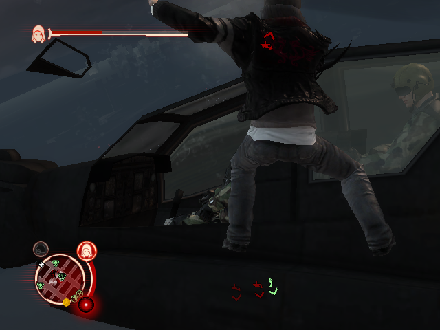 Просто идеальное антивертолетное средство, особенно, если вам уже доступен угон этих самых вертолетов. Так же можно избавляться от конкретных двуногих, путем выделения индивидуума в толпе (по умолчанию это кнопка «tab») и мощной атакой. Зачищать площади этой способностью сложнее, но прием «Чистильщик» решает эту проблему сразу, действуя как серп: была толпа махнул нет толпы. Так же полезен захват (по умолчанию кнопка «e», чем дольше держим тем дальше летит рука), если цель размером с вас, то она подлетит к вам, если цель больше вы к ней.