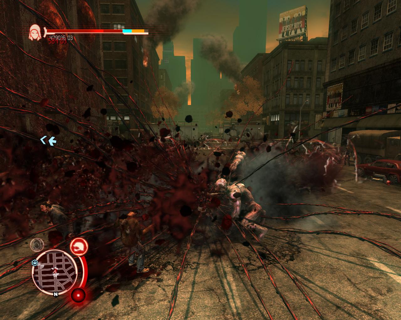 А вот здесь уже чуточку любопытнее. Система комбо в Prototype достаточно интересна: наш герой знает 3 быстрых атаки (ЛКМ) и 4 мощных атаки (ПКМ) для любой способности, и прекрасно умеет их совмещать. Списка комбинаций в игре нет, по этому действовать вам придется интуитивно. Каждый удар одного типа имеет одинаковую силу. Т.е. если вы пять раз нажмете ЛКМ то увидите пять разных ударов одной и той же силы. С комбо та же история ЛКМ+ЛКМ+ПКМ и ЛКМ+ПКМ+ЛКМ разные комбинации и удары в них будут разные. Но общие повреждения будут одинаковы.