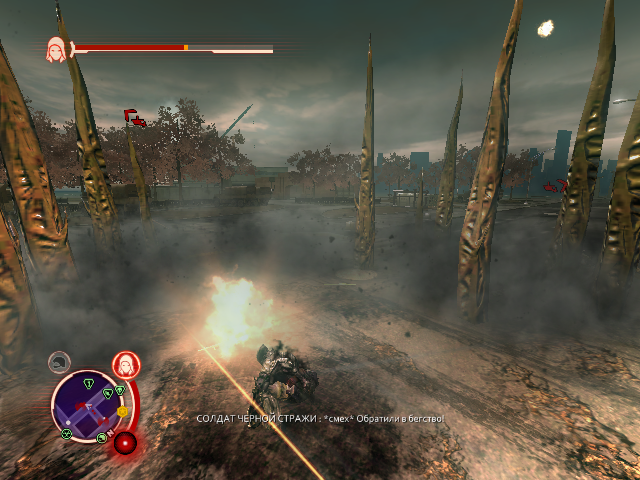 Первая способность. Собственно, просто помогает кромсать неугодных солдат, да и в схватке с охотником более приемлемый вариант, чем кулаки. Одна из мощных атак Подземные Шипы, позволяющая избавиться от нескольких целей, которые стоят рядом друг с другом. Конечно танки ломать с этой способностью тяжеловато, но для отделения от врагов лишних деталек вполне годна, к тому же позволяет достаточно быстро покрошить в капусту солдатиков.