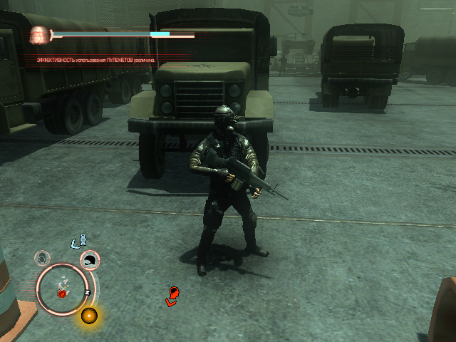 Снимает практически весь урон, но только с одной стороны (спереди) и только пока активирован (да, его тоже возможно сломать). В сложенном состоянии виден как бугорок на спине Алекса, однако это в любом случае замечается военными. Щит активируется на кнопку спринта («Shift» по умолчанию). Способен выдержать танковый снаряд практически без потери здоровья. Полезная штука в общем.