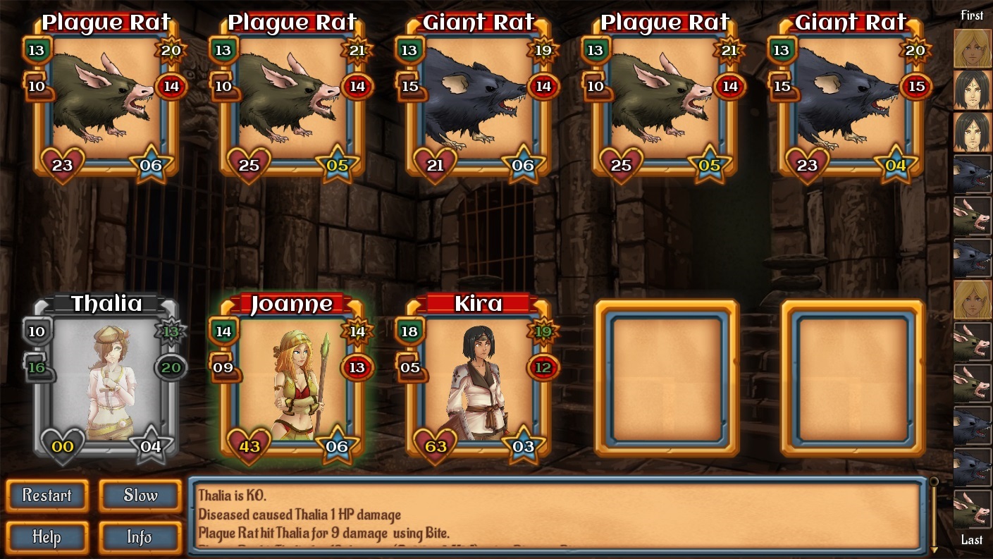Боевая система явно деградировала с времён Loren the Amazon Princess. Там у каждого навыка могло найтись применение, ряды имели хоть какой-то смысл… здесь всё куда печальнее. Кира (воин по классу) не может прикрыть своих сестёр без нужного навыка, использование каких-либо зелий, кроме лечащих абсолютно бессмысленно из-за особенностей боевой системы. Игра представляет собой пошаговый обмен ударами и спец-способностями. Окно боя выглядит вот так: