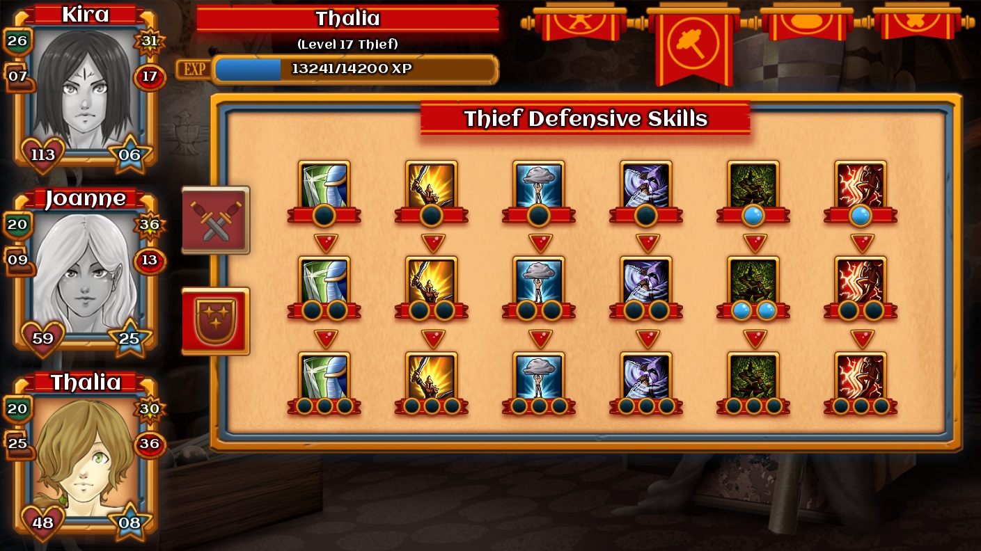 Первым делом берите Protect, затем Counter Attack. Третьим навыком максите Warrior Blessing, и нужда в лечилках практически отпадёт. После этого можете взять Hold the Line (ставьте её между двумя сестрами, чтобы эффект распространялся на каждую!) и Rampage.