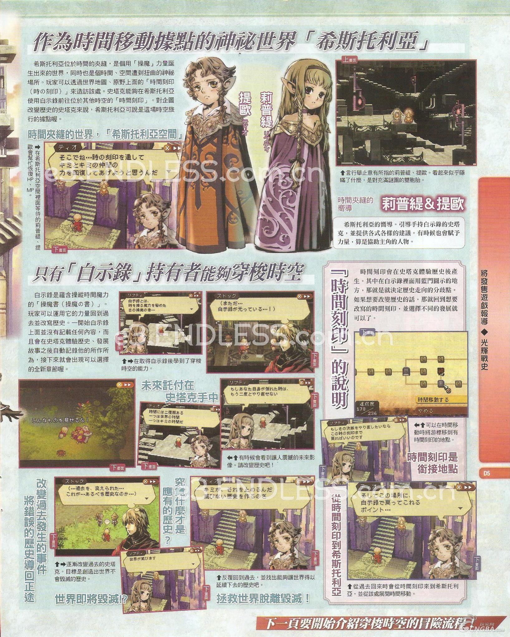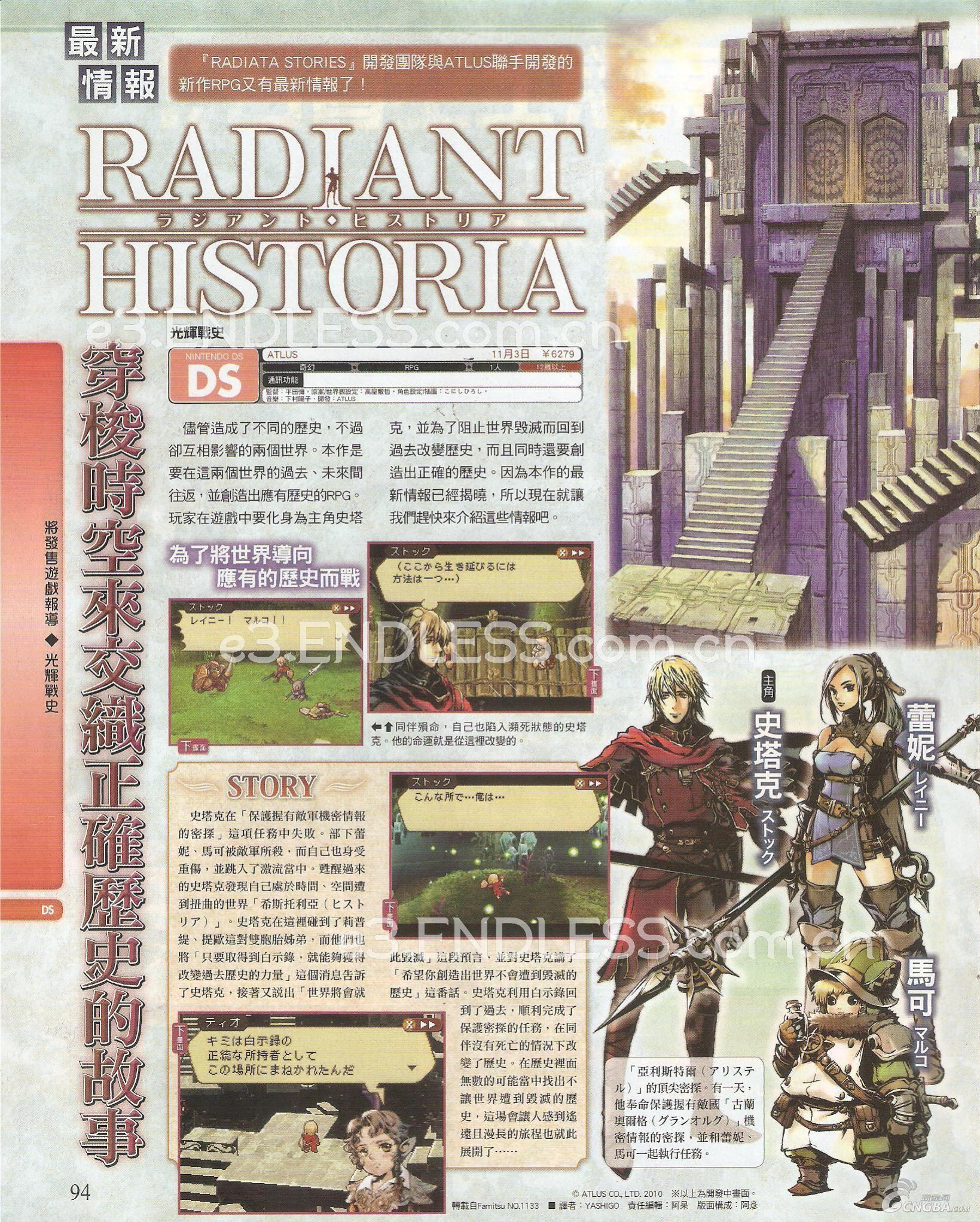 Вскоре «Фамитсу» начал помаленьку раскрывать другие аспекты игры. Так, например, в одной из своих статей там поведали о боевой системе, плюс раскрыли парочку сюжетных деталей: теперь стало известно, что в игровом мире есть пять стран, враждующих друг с другом, однако не это является главной проблемой мира, а постепенное превращение плодородных земель в пустыни. В этой же статье стало ясно, что протагонист сможет путешествовать во времени и по параллельным мирам благодаря двум чадам из Historia особого измерения, в котором очутится наш протагонист после смертельного ранения во время выполнения одной своей миссии.