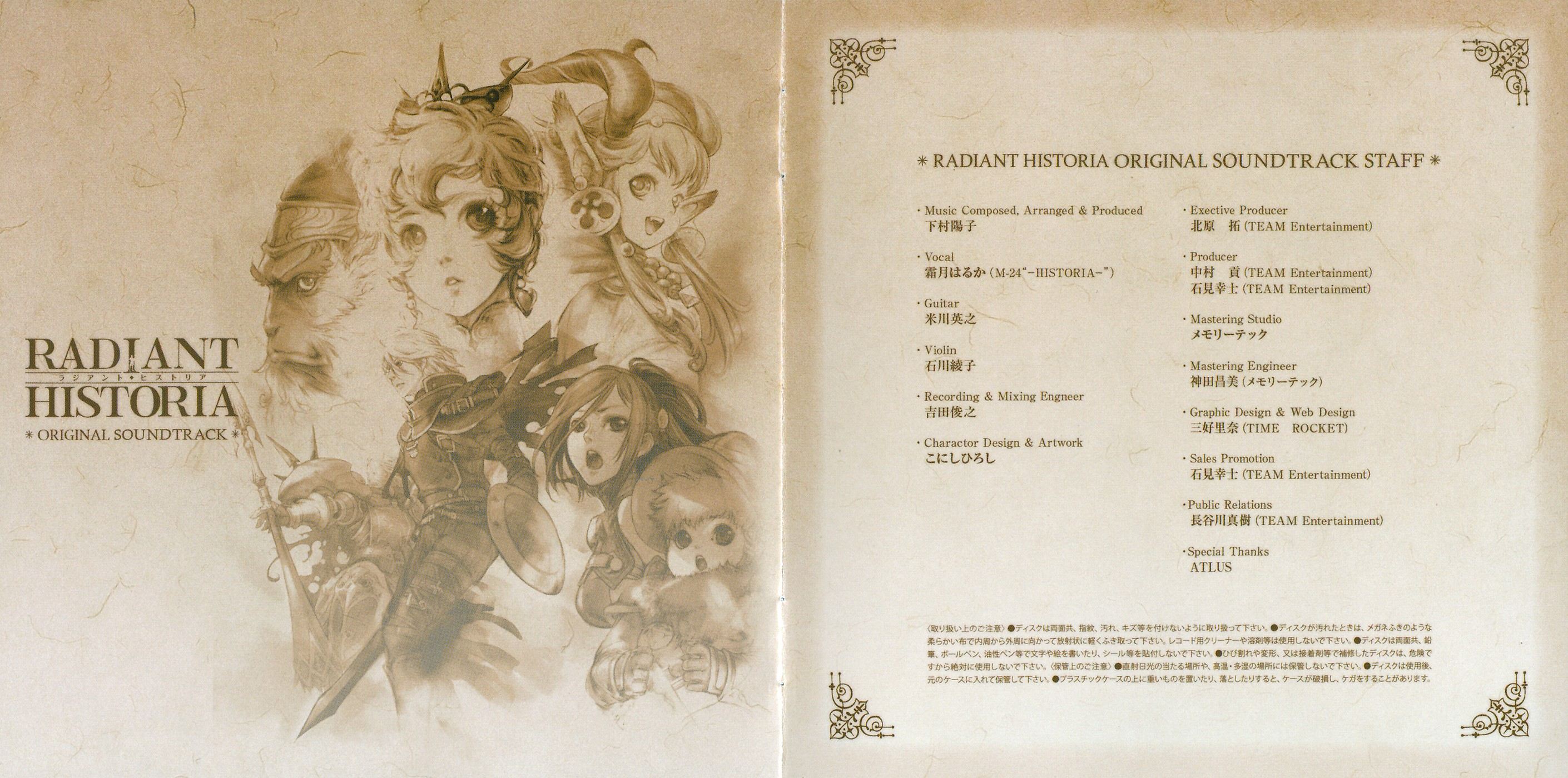 Radiant Historia Original Soundtrack Официальный сборник, который вышел в Японии 3 ноября 2010 года под издательством «Atlus».