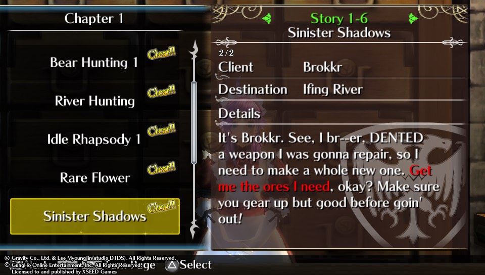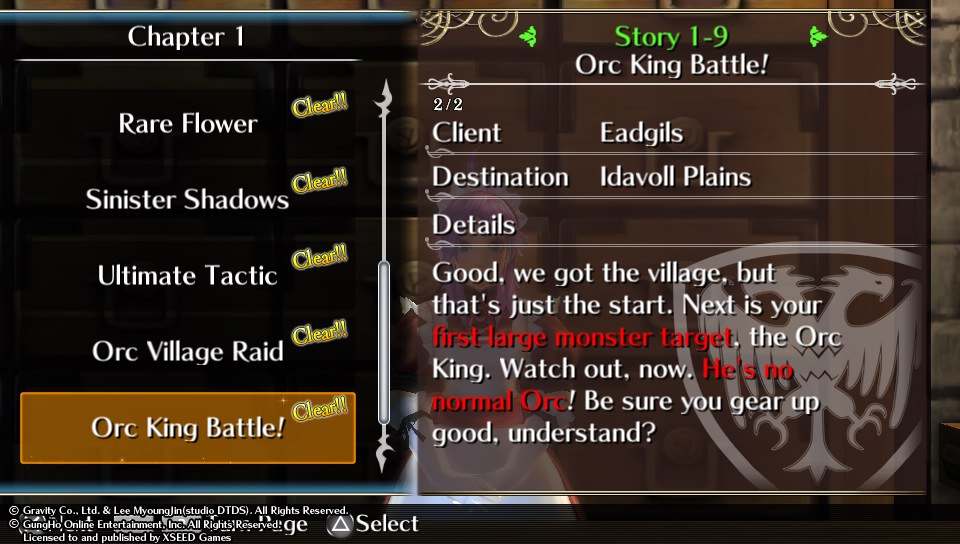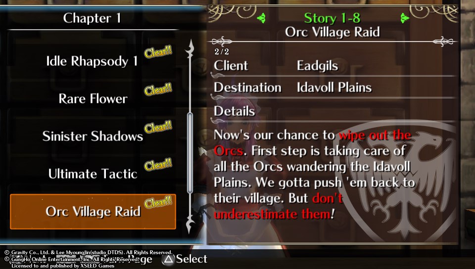 Награда за квест: нет, но может выпасть карта орка с Attack up Lv1 – полезная вещь в начале игры.