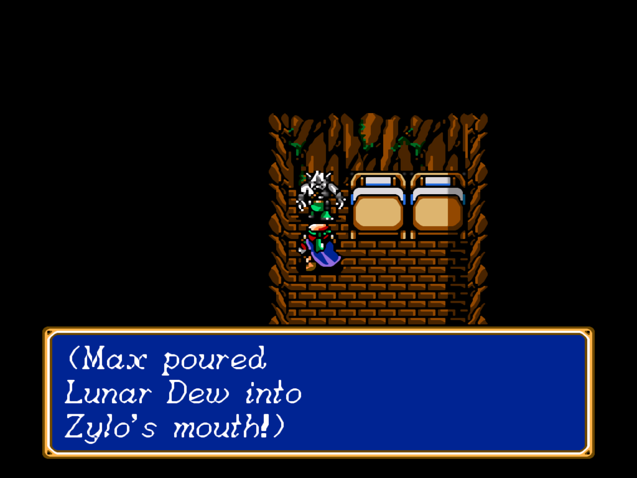 | Зелье выдаст вам алхимик из Бастока, после того, как вы отдадите ему Лунный камень из шахты города. | На северо-западе Бастока есть помещение закрытое решеткой. Отнесите зелье туда и расскажите об его у вас наличии девушке, что стоит перед входом. Она откроет дверь и вы сможете отдать зелье оборотню Зило. Подойдите к нему и используйте через меню эту Лунную Росу. Он проглотит зелье и исцелится от нахлынувшего на него безумия. После чего присоединится к вашей команде. | ||||||