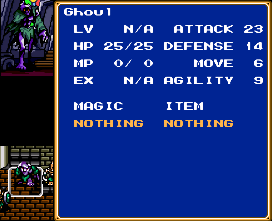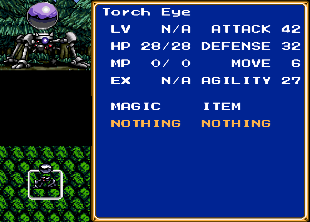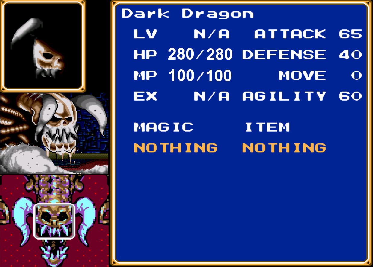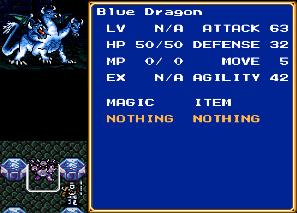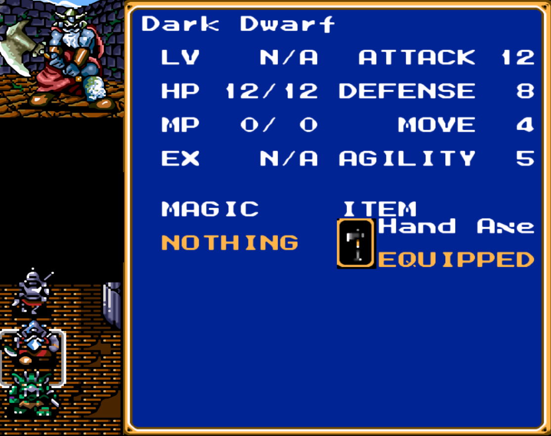 - Особая атака — «Демоническое пламя Lv.2». Дистанционная атака на расстояние 1-3 кл. по площади в 13 кл., наносящая 25-32 НР урона, игнорируя защиту цели