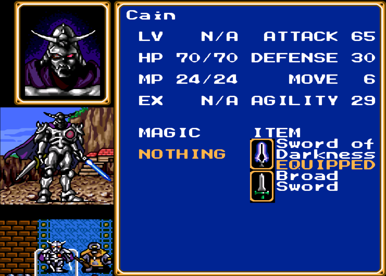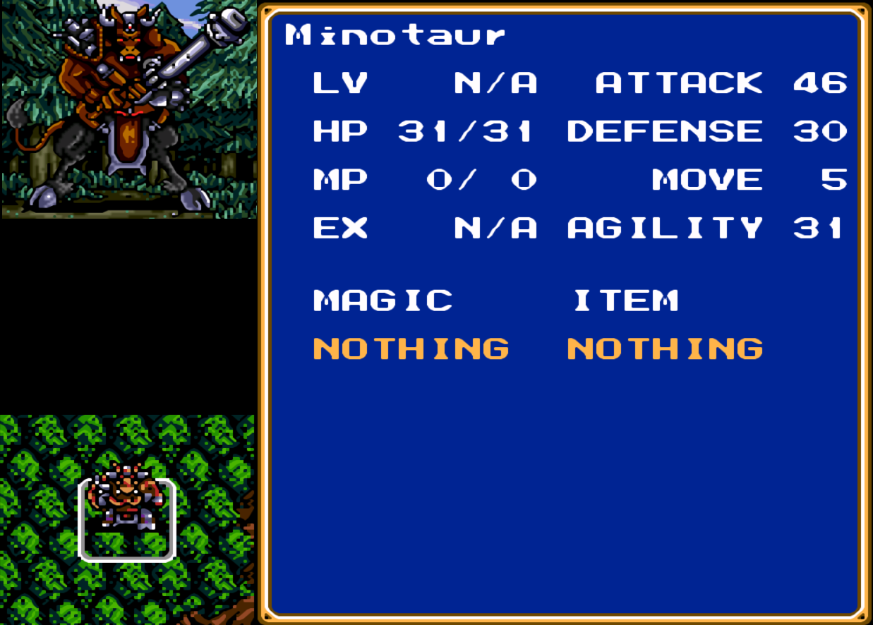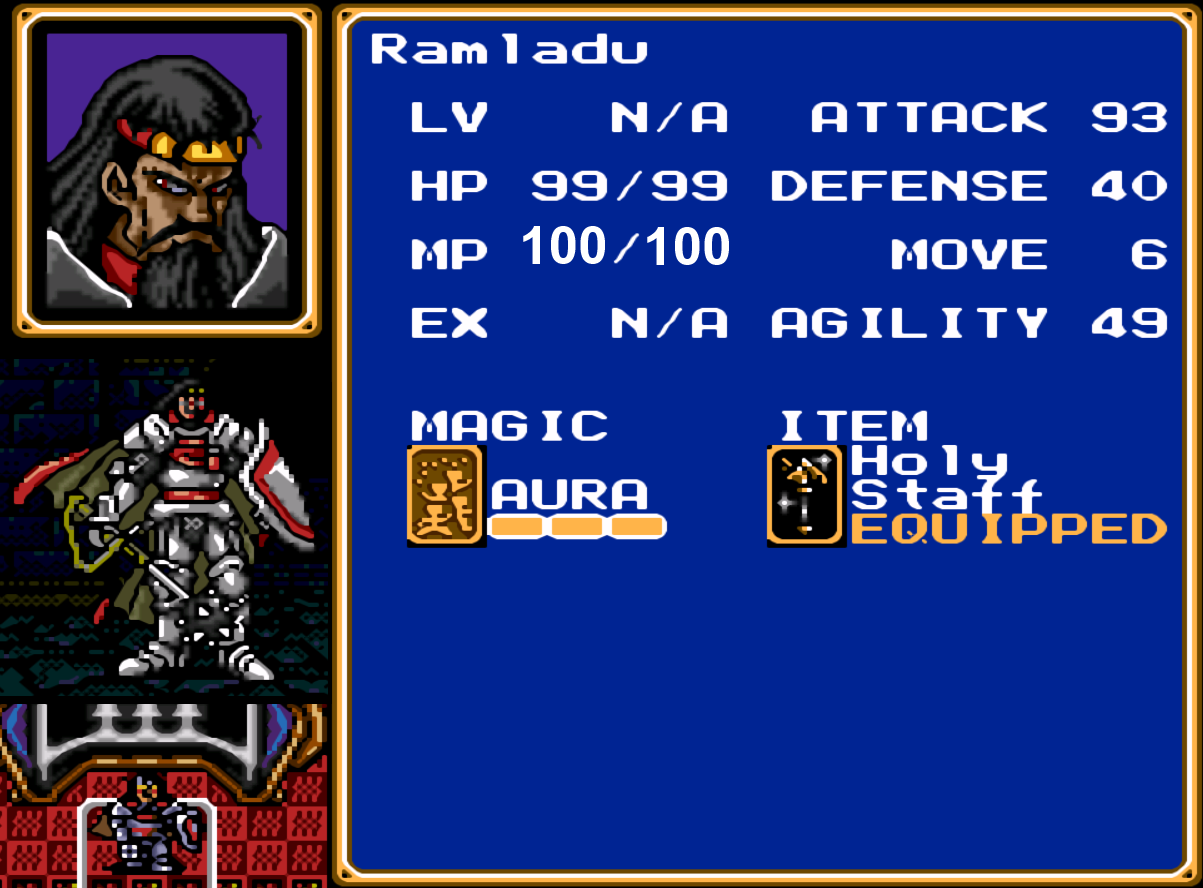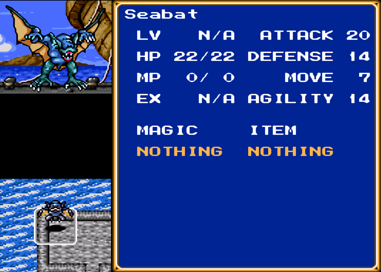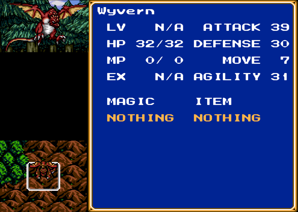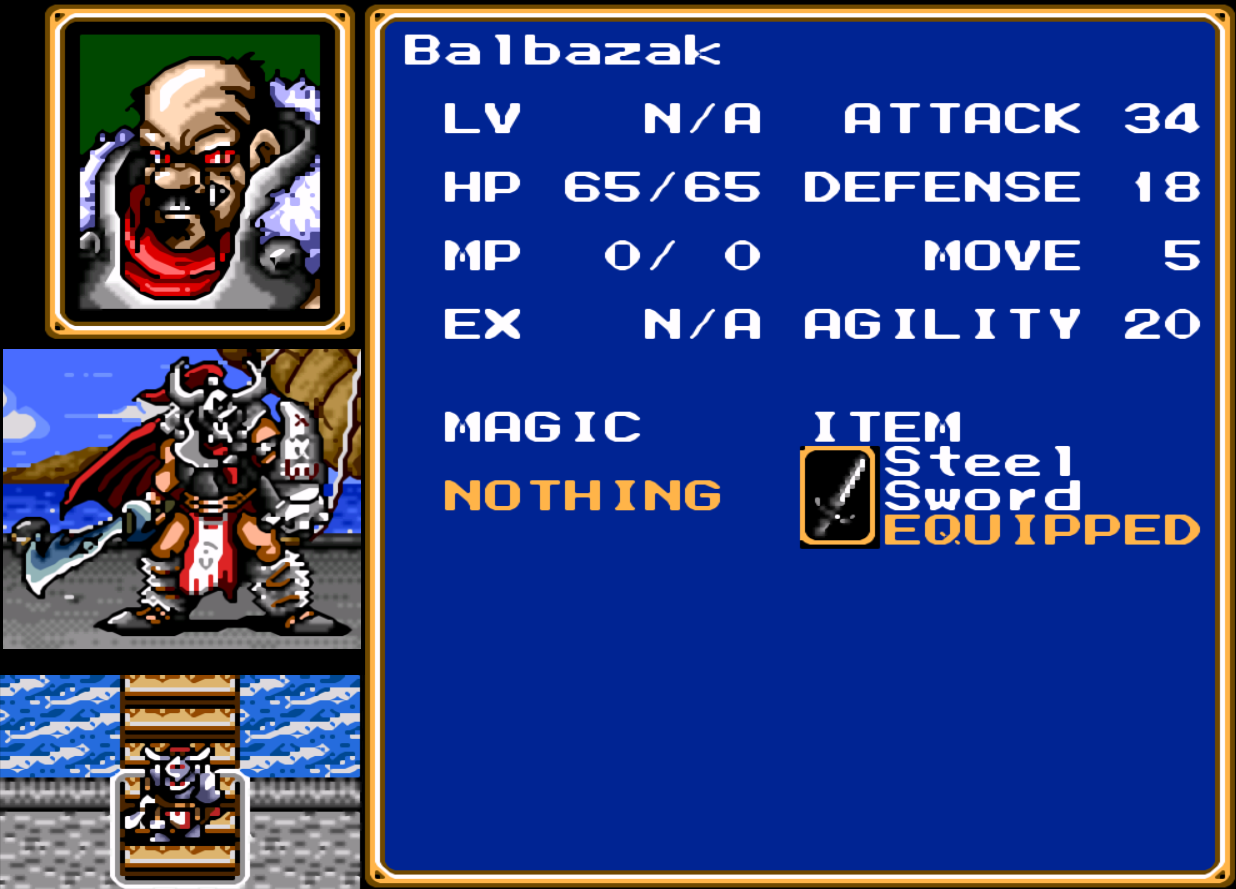 - Особая атака — «Демоническое пламя Lv.2». Дистанционная атака на расстояние 1-3 кл. по площади в 13 кл., наносящая 25-32 НР урона, игнорируя защиту цели