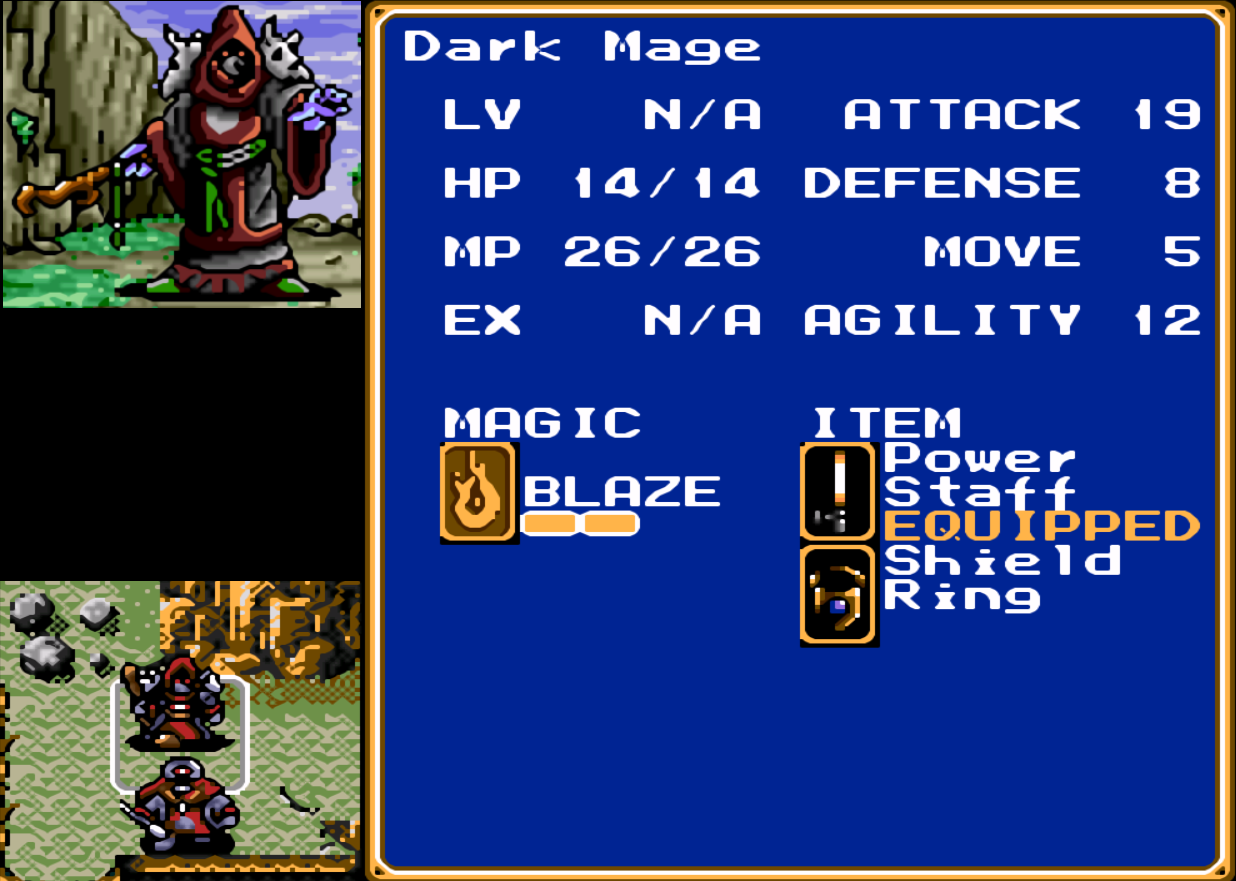 - Маг — основной способ атаки — применение магии массового поражения. Использует: Огонь Lv.2, Лед Lv.2, Молния Lv.2, 4