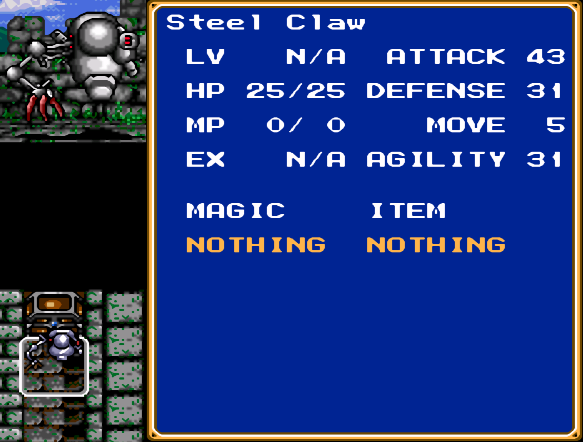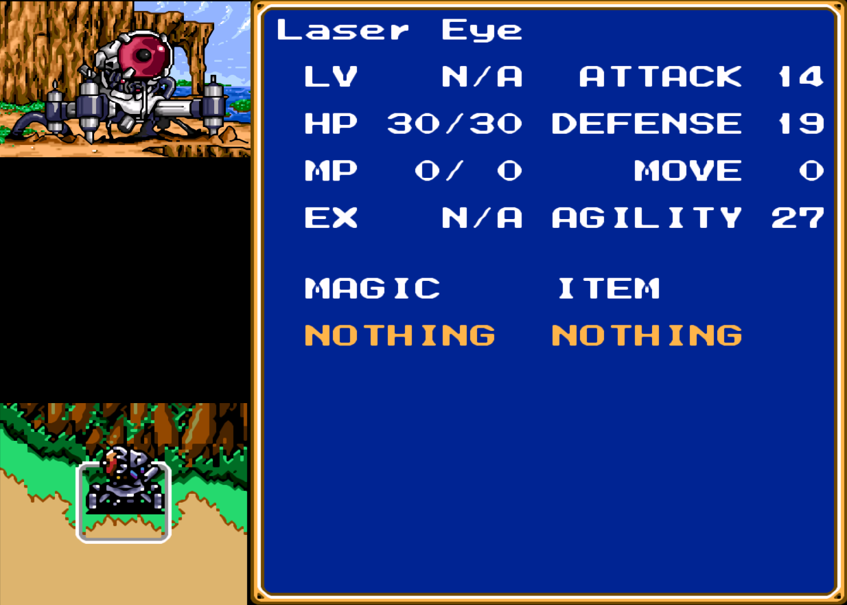 - Особая атака — «Лазерный луч». Дистанционная атака на расстояние 1-2 кл., наносящая 18-21 НР урона, игнорируя защиту цели