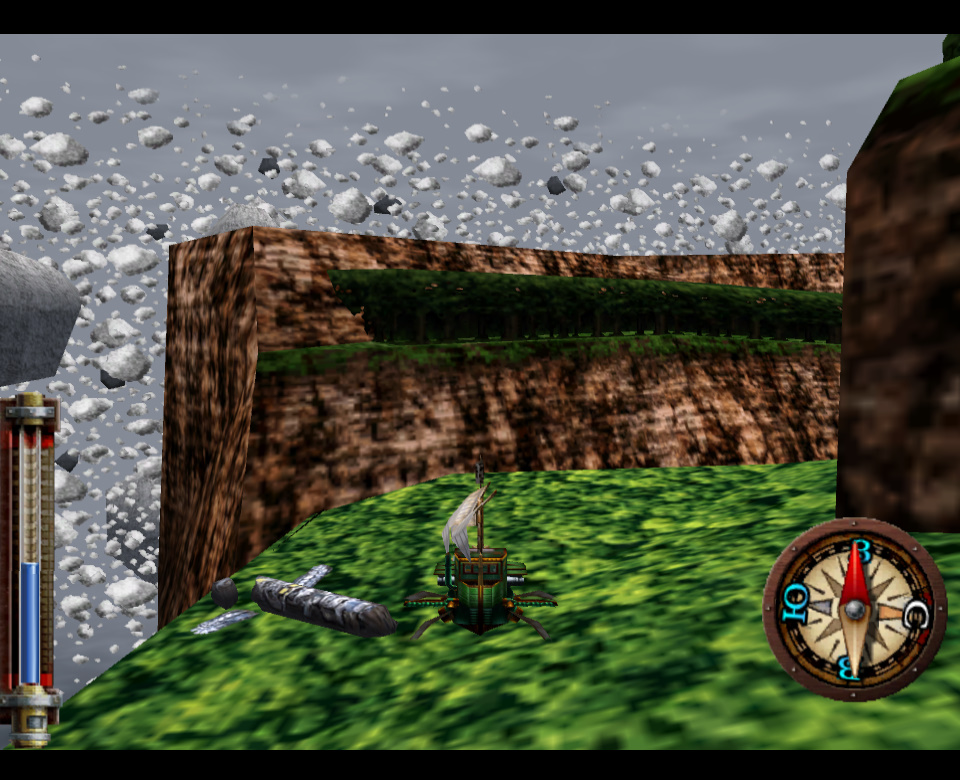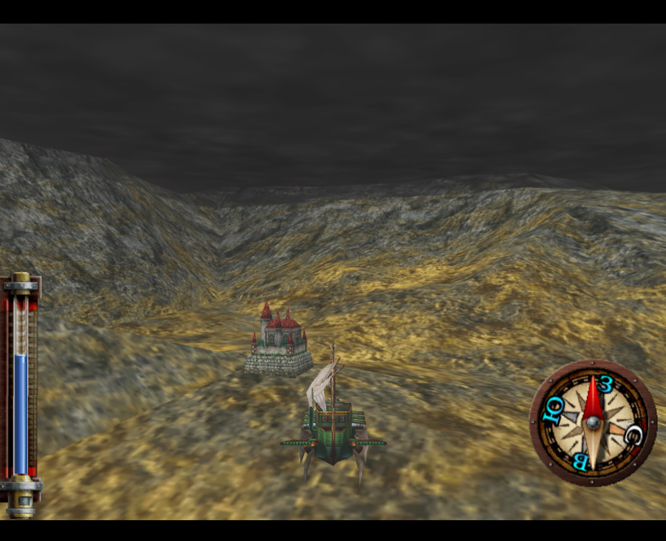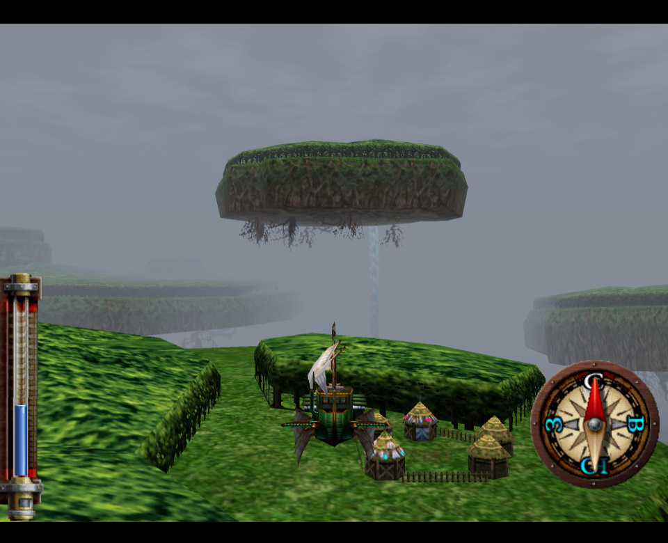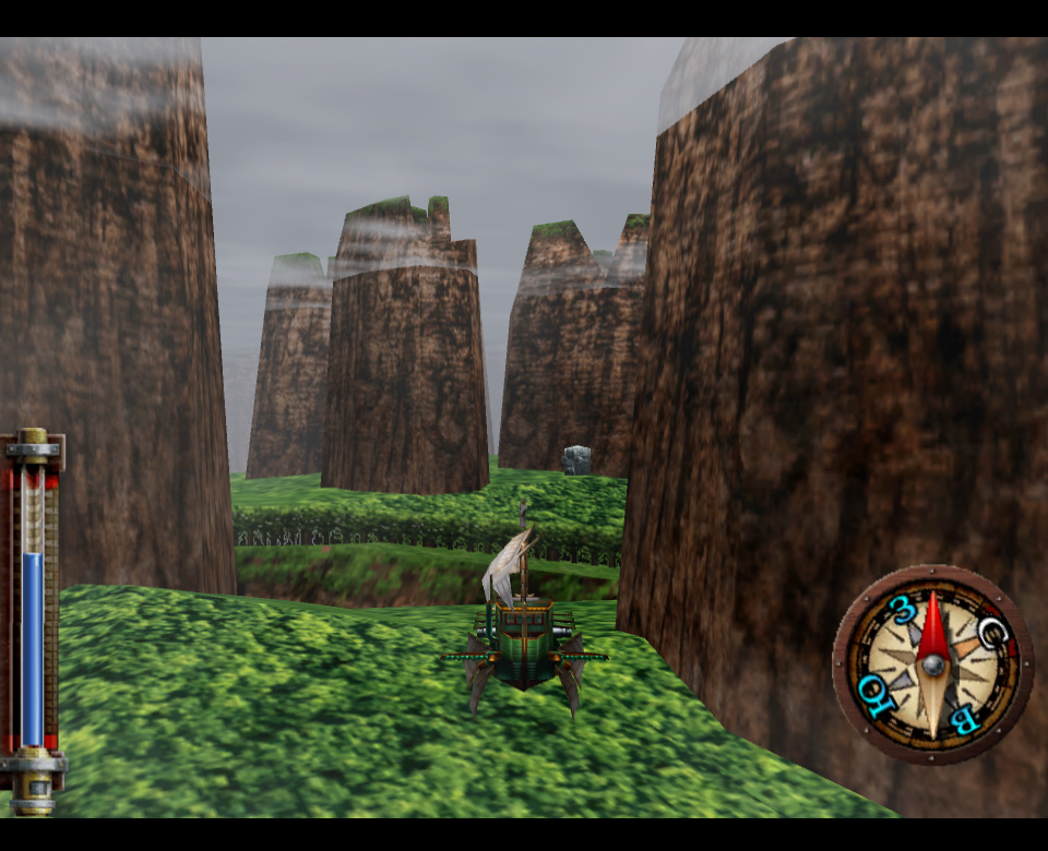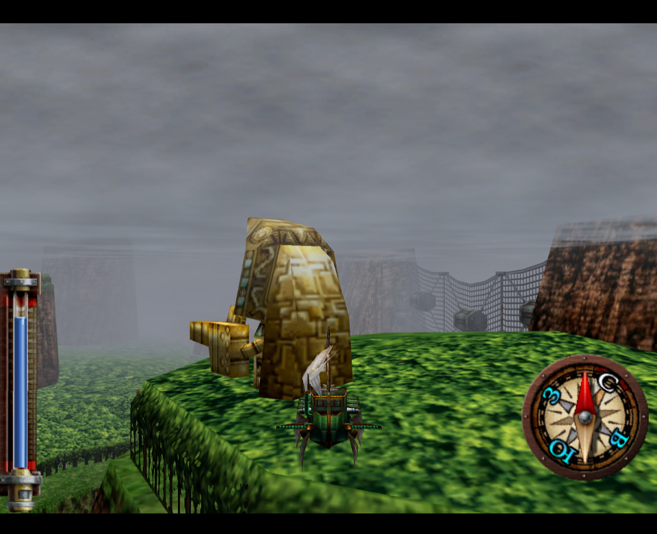 Вокруг всего континента быстро летает, против часовой стрелки, машина золотистого цвета. Это открытие № 69 Wings of Gold. Чтобы её поймать, лучше найти маршрут движения и дождаться. Лучшая позиция это в большой расщелине, разделяющей континент на двое, возле решеточных ворот, где вы увидите ее издалека. [15/64] [21/88]