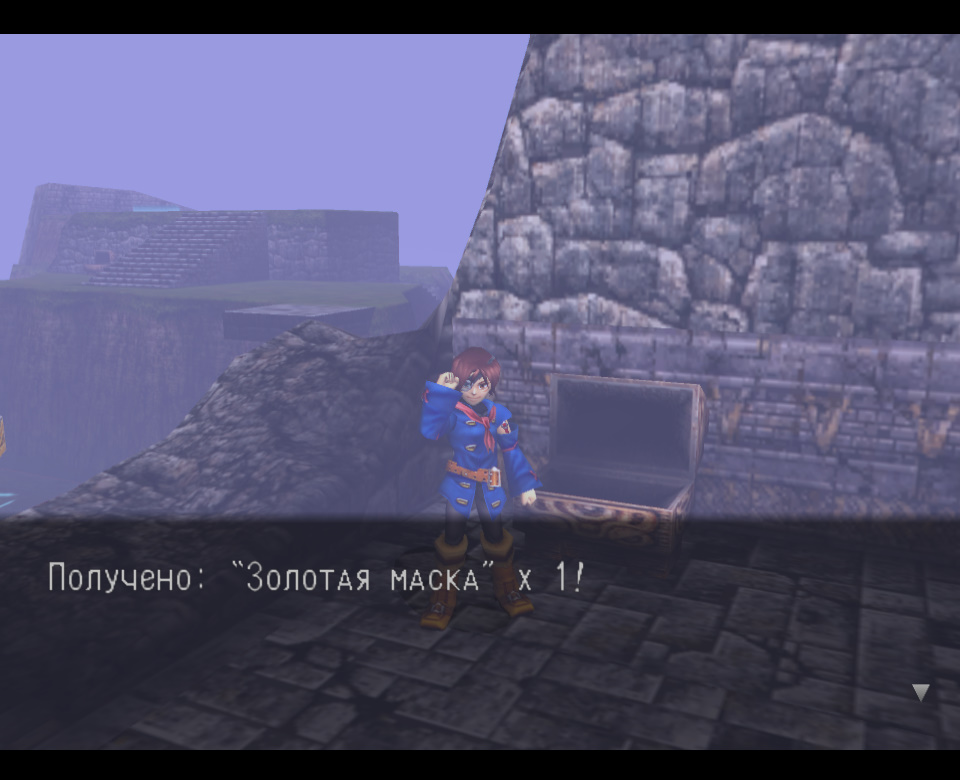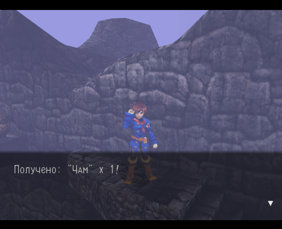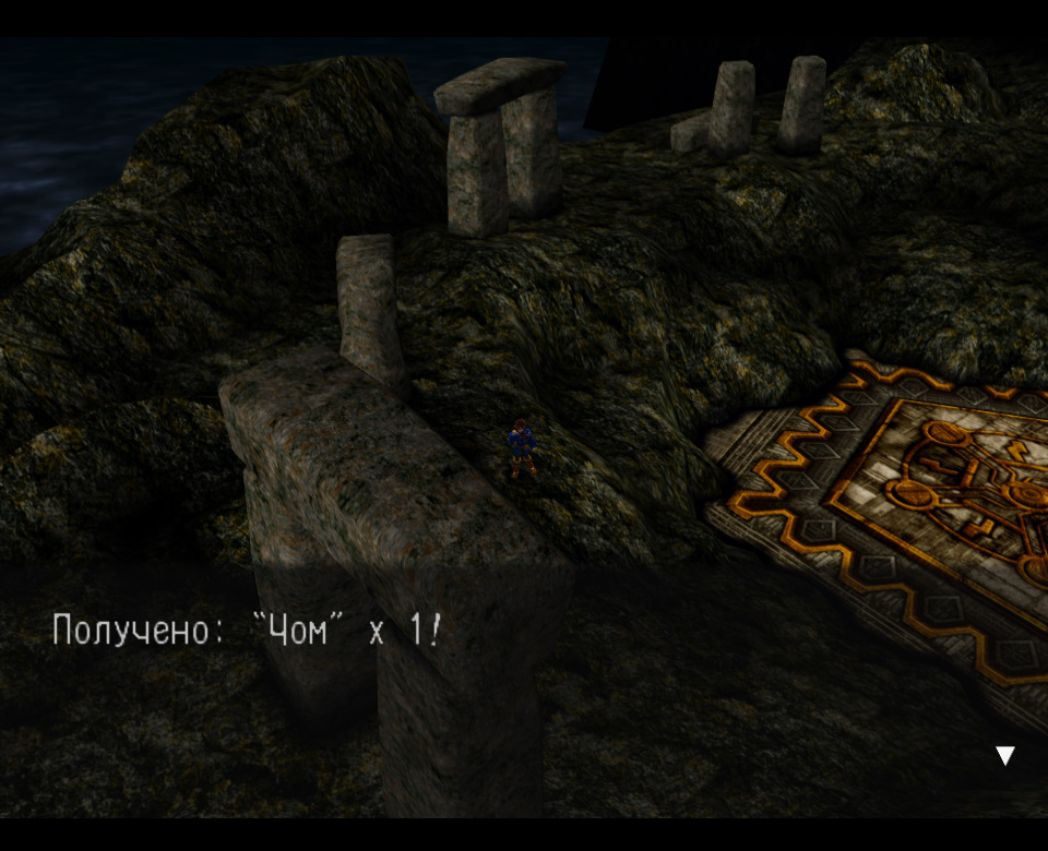 Воспользуйтесь лестницей позади хижины и двигайтесь дальше по дорожке. Возле прохода в следующую зону находится 6-ой Чам для Капила. Проходим в следующую зону, где увидим обычных людей без маски и повреждённый корабль. На корабле найдите [41] Sacri Crystal x25. Вернитесь на палубу корабля и разговариваем с молодым человеком по имени Ганс. Он вручит нам необходимое топливо для путешествия Moon Stone Fuel.