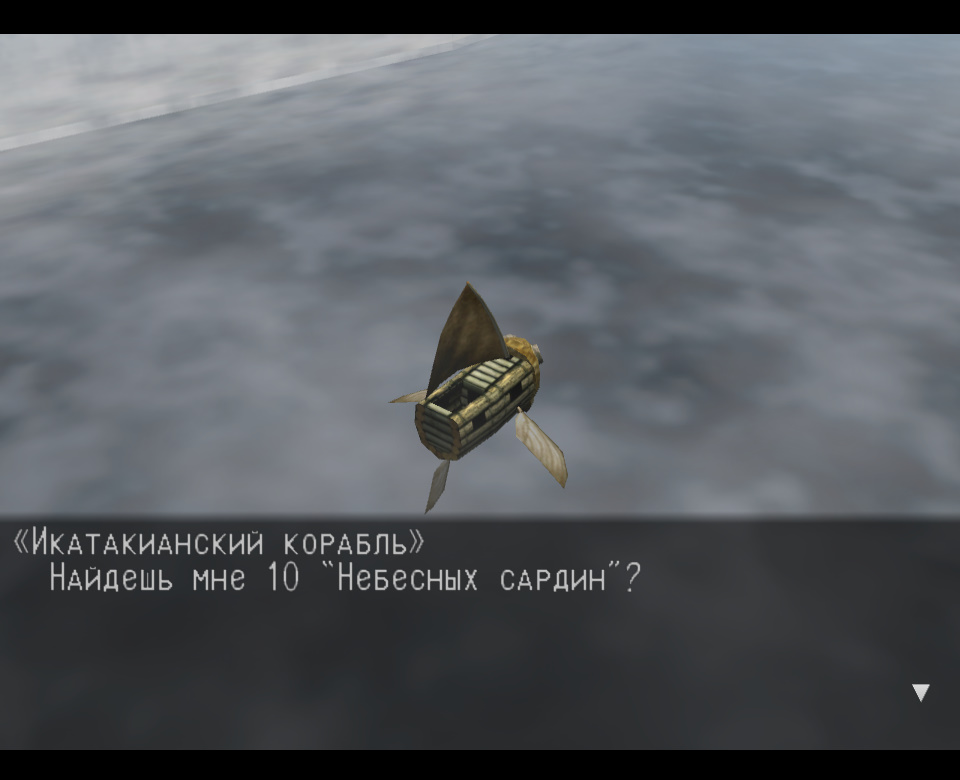 Рядом с Хортекой, на юге плавает другой корабль. Поговорите с ним. Он попросит добыть 10 Sky Sardins. Как удачно, что мы их сохранили. Отдаем и получаем 1-ый Абирик Чам.