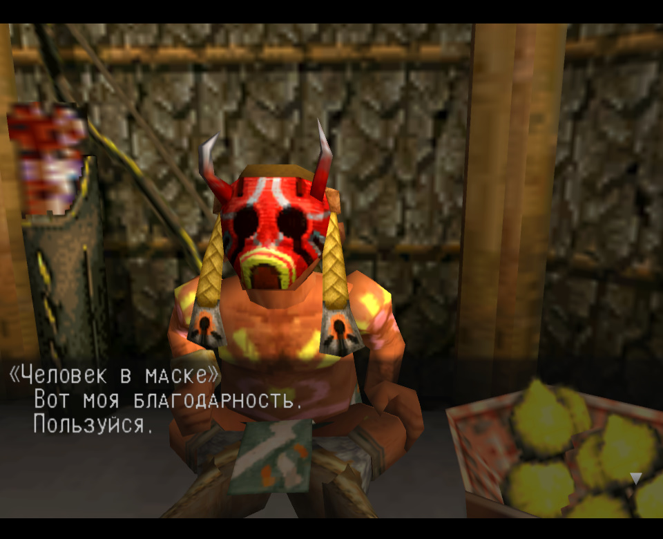 Встречаем местных аборигенов. Пока нам не доверяют мы не можем нормально общаться с людьми и посещать магазин. Спускаемся вниз по склону справа, затем взберитесь на следующий склон, спуститесь по лестнице, пройдите через зону тоннеля, поднимитесь по склону и увидите дом старейшины. Над дверью у него красная маска. Поговорите со старейшиной. Его брови с дискетами просто эпичны. Здесь же есть гостиница, где можете заночевать.