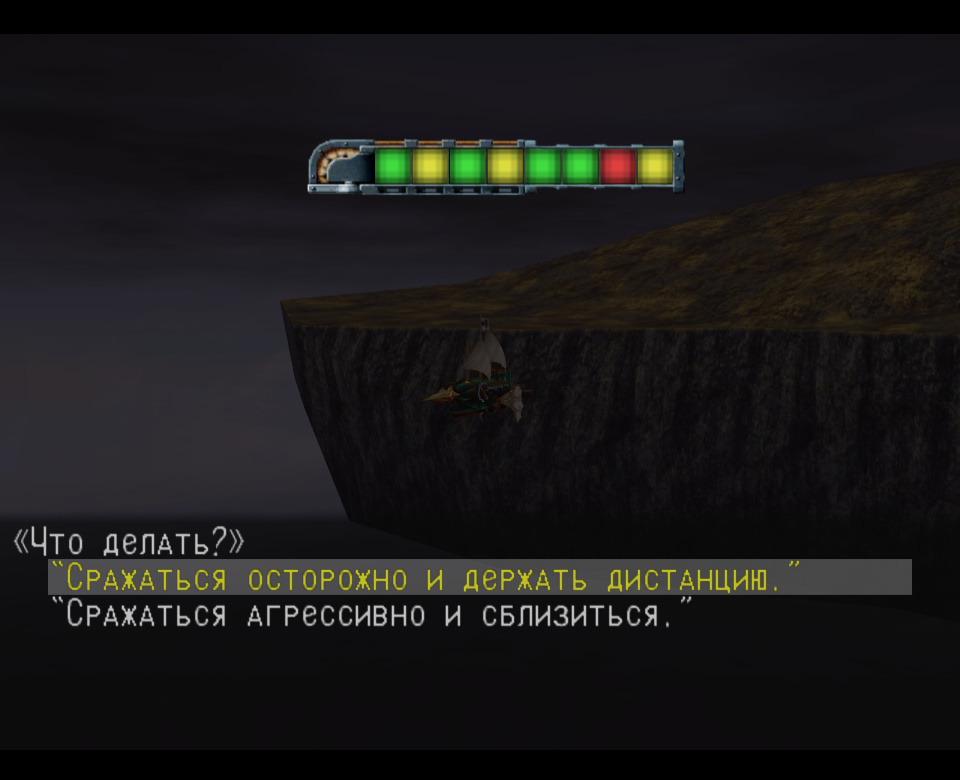 Тот же корабль, который мы раньше встречали. Копим SP в первом раунде, ставим Усиление и запускаем торпеды во втором раунде. Выберите агрессивное сражение. И стреляем из Гарпунной пушки в третьем. Корабль спокойно «улетит», бормоча извинения. Лечиться необязательно, даже если будете при смерти, главное успеть его добить. |