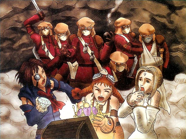 “That sure was a tough fight. First the Armada… then the Blue Gigas? I'm just glad we survived and managed to get the Blue Crystal, too! But that reminds me… is something going on between Enrique and Moegi? A prince and a princess in love? Hmm…”