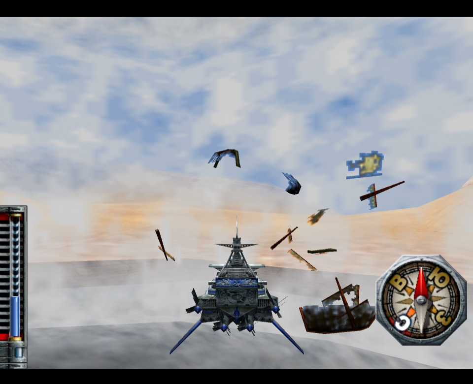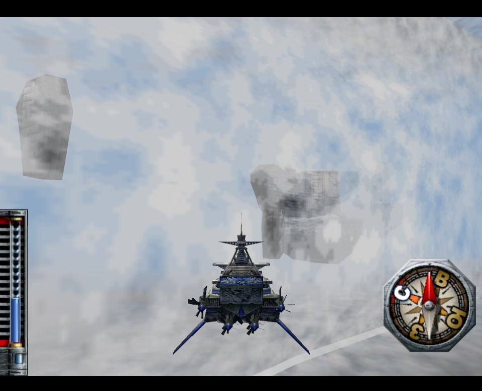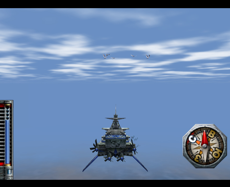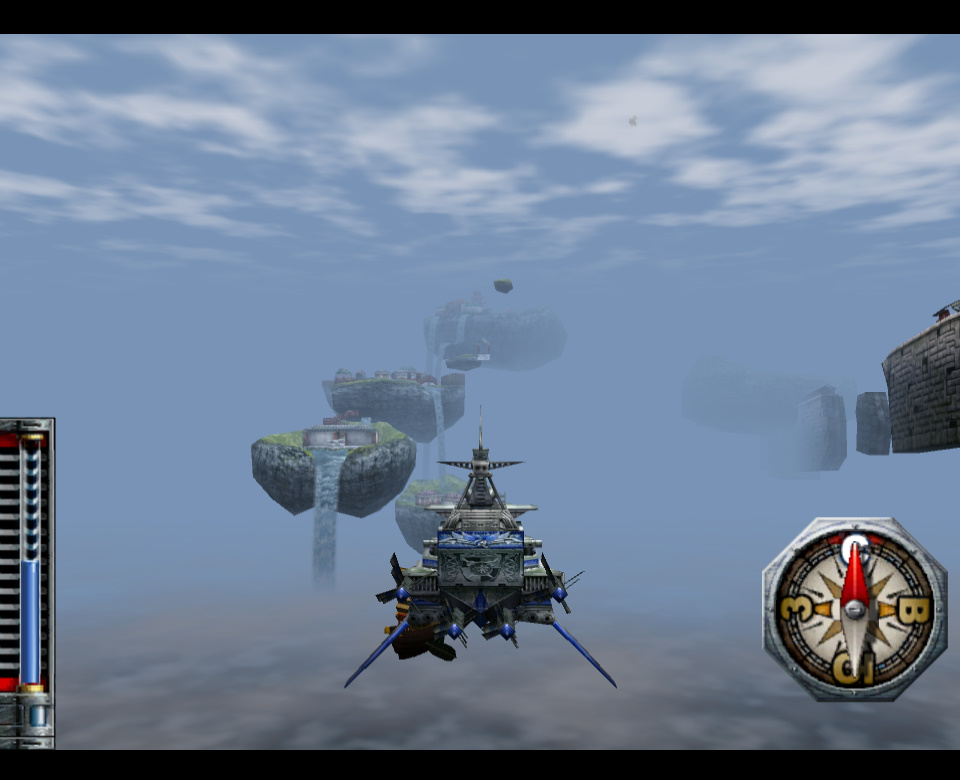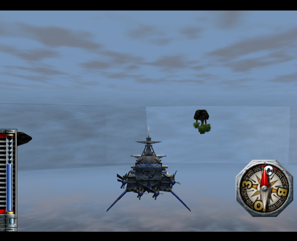Наш корпус укрепили. Теперь мы можем не только проходить каменные рифы, но и небесные разломы, те самые ветряные стены. Это даёт нам повод ещё прогуляться по квестам. А поскольку Вайс у нас капитан и никто ему больше не указ, ни старик-отец Дайн, ни старик Драхма, ни просто Гилдер, мы вольны вообще лететь куда хотим. Хоть на край света. Так и сделаем!