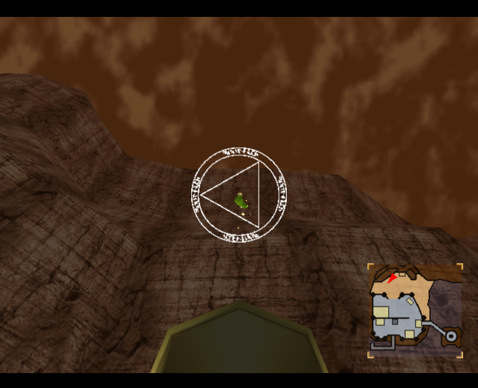 Ныряем обратно. Возвращаемся в предыдущую комнату. Теперь поднимаемся по склону на поверхность, на западе. У развилки сверните налево, и эта дорожка приведёт к переключателю.