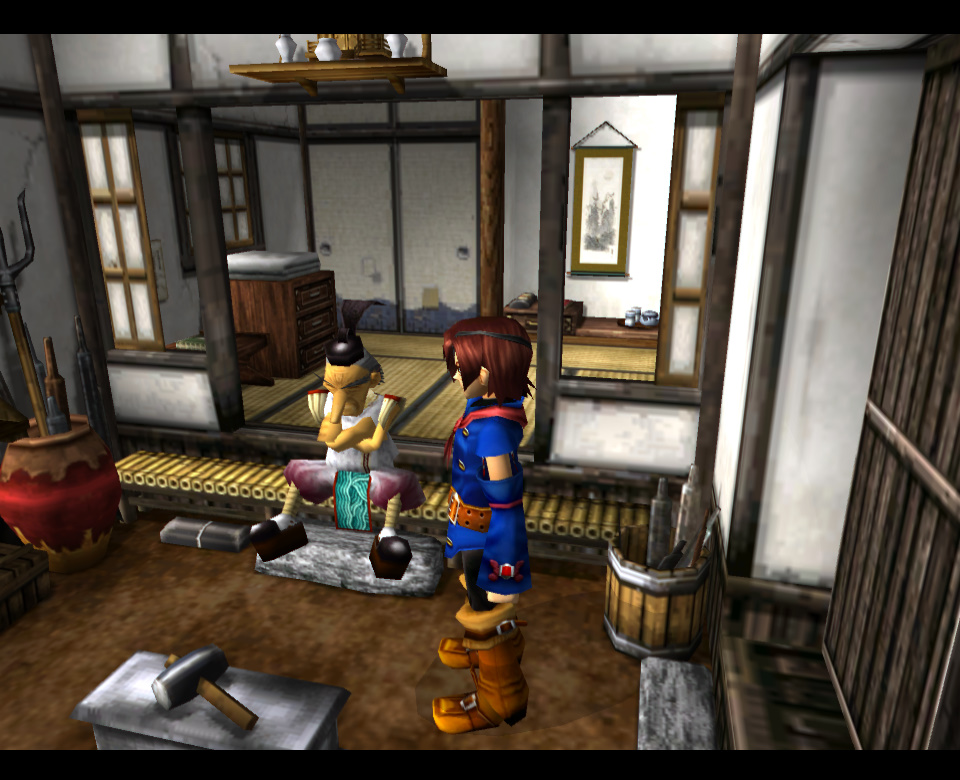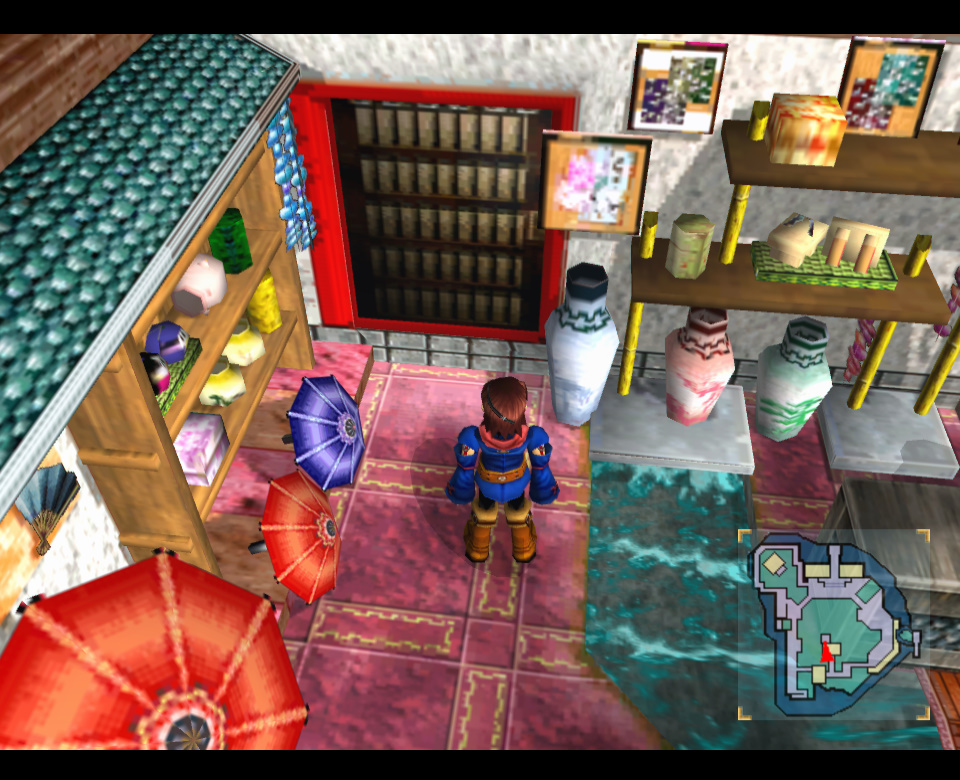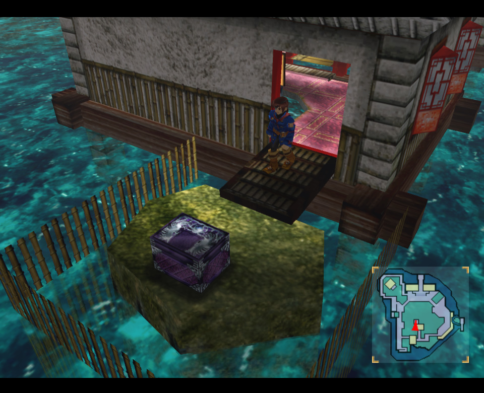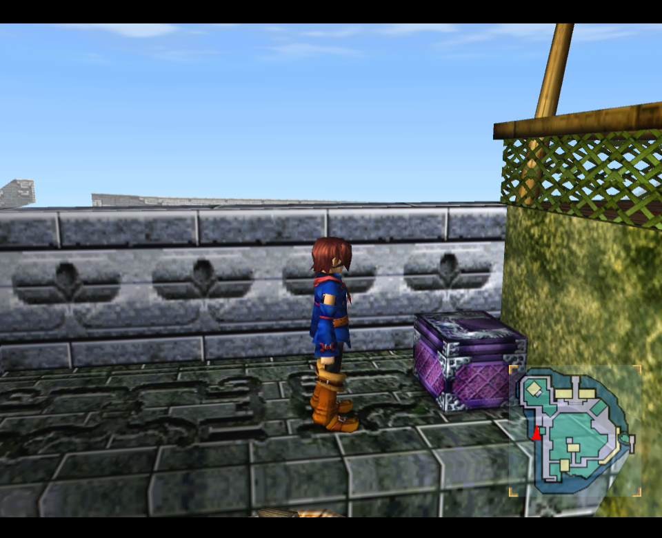 Воспользуйтесь лифтом южнее дворца, чтобы оказаться в главном городе. Поговорите с птичкой, если хотите. Отыщите 20-ый Чам в правой части города, возле причала парома. В магазине предметов откройте дверь, обнаружите [93] 3000 gold.
