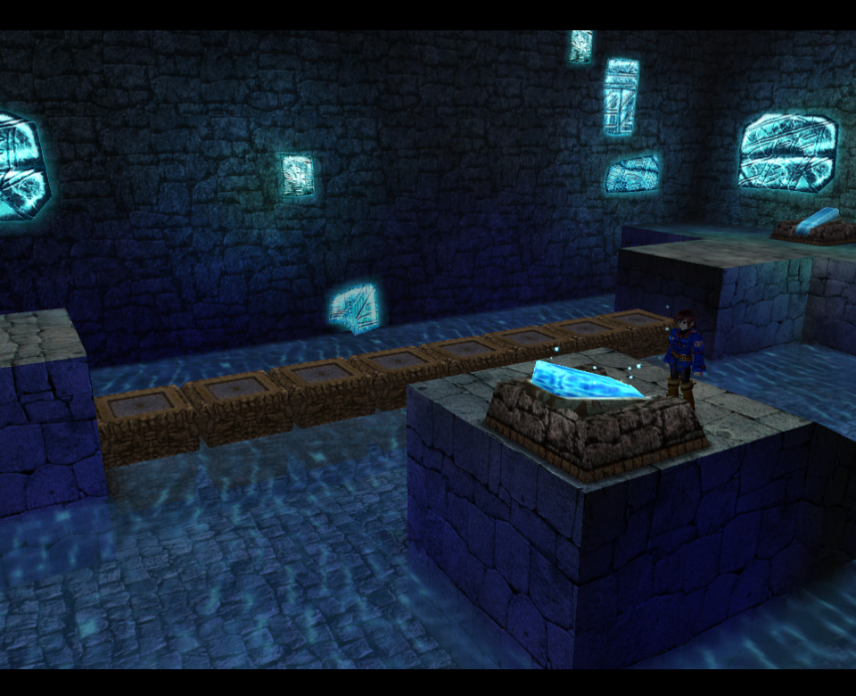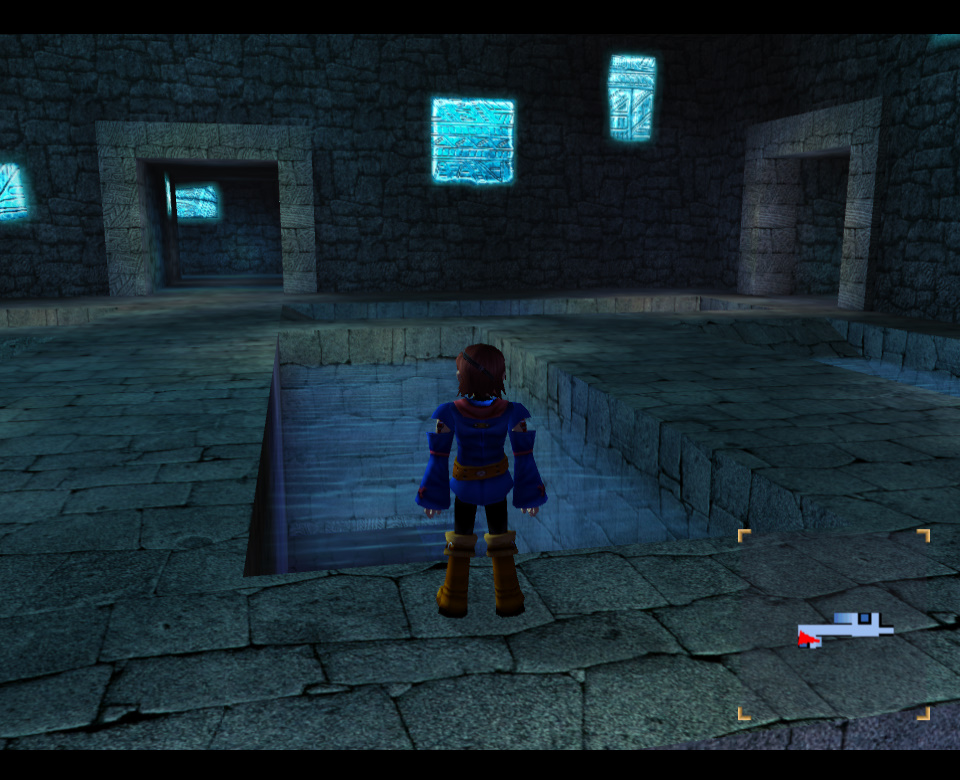 Как только окажетесь в подземелье, соскользните по верёвке вниз и двигайтесь дальше, через водный туннель, по дорожке до большой комнаты. Это главная комната, откуда надо спрыгнуть глубоко вниз. Но так мы разобьемся, так что эту местность надо заполнить водой. Все следующие здесь комнаты имеют переключатели воды. Всего здесь нужно включить 4 переключателя.