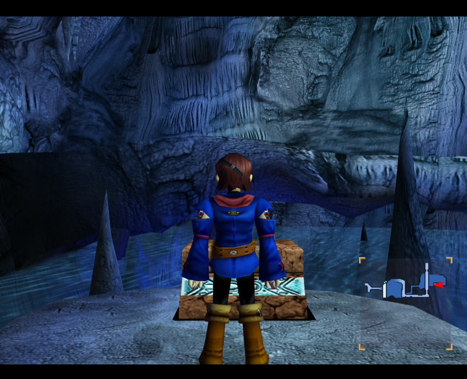 4) Пройдите в южную комнату и двигайтесь дальше до развилки. Затем сверните направо и держитесь этого направления, пока не подойдёте к воде. Спускаемся в воду, под водой идем в восточный проход и окажемся на другой стороне пещеры.