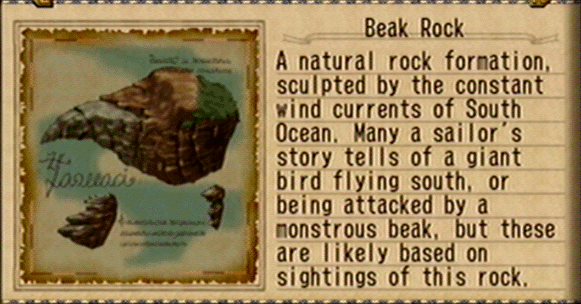 Пересекая Южный Океан к Иксатаке, становимся на против южного небесного разлома, опускаемся. На западе увидите маленький камень летящий к вам. Однако если открыли Beak Rock, не увидев, остановитесь и летите на север, к северному небесному разлому и смотрите на восток. Спустя некоторое время, вы его увидите. |