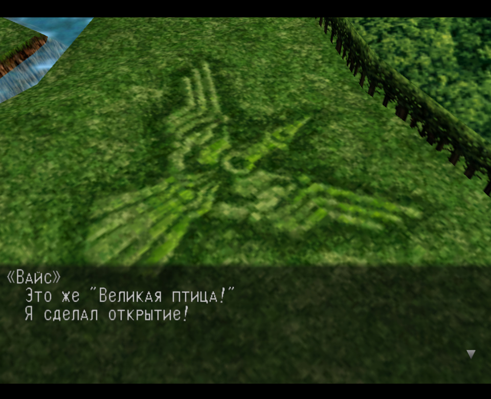 Летим на северо-запад от Хортеки, увидите голую площадку посреди леса после озера с узором птицы. |