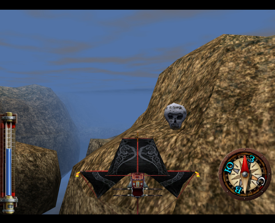 В начале игры, сразу же как только берете управление над Альбатросом летите вперед. Находится прямо на острове между островных гор. |