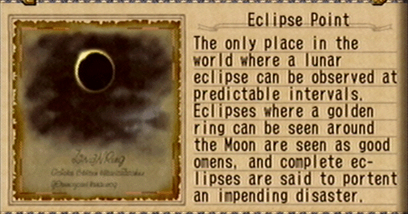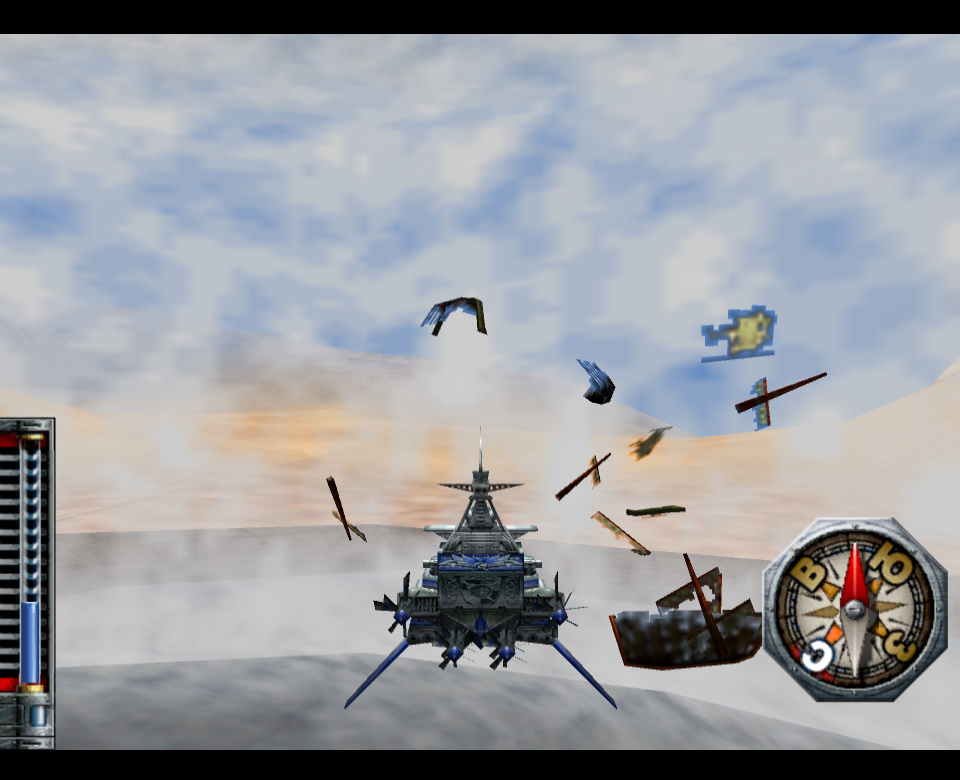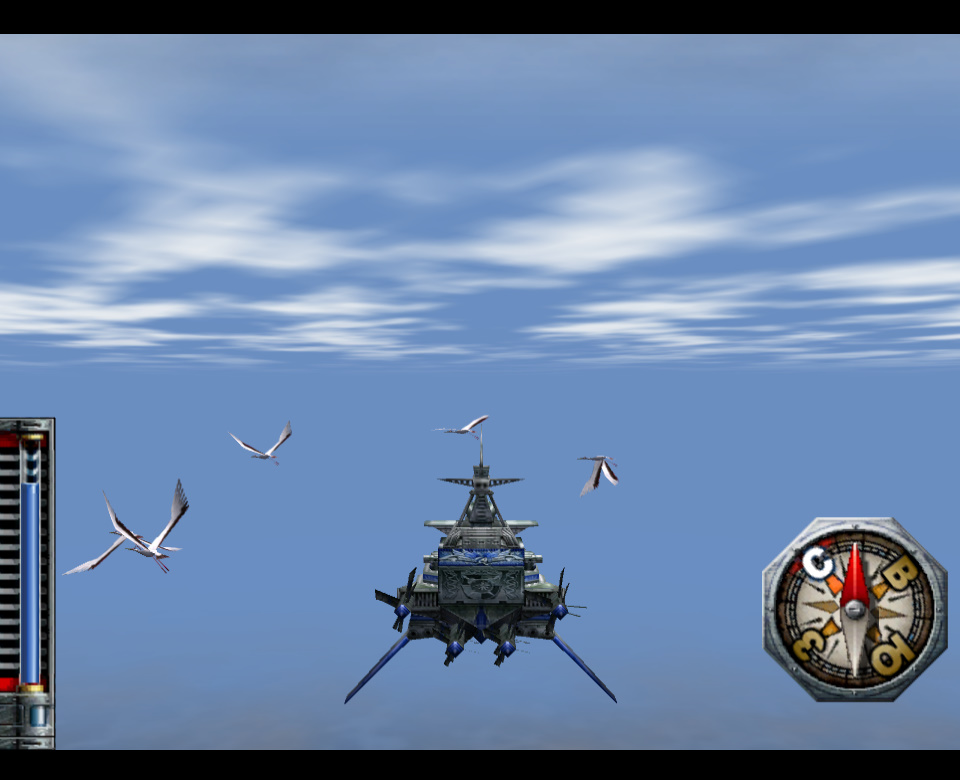 Летает по часовой стрелке, пересекая континент Валуа к Тёмному разлому на восточной стороне Валуа, и обратно к западной стороне Валуа, пересекая небесный разлом. Из-за мрачных туч его тяжело обнаружить. |