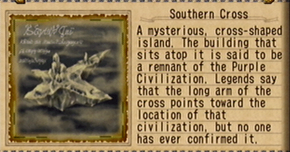 Когда пройдёте в Северный океан от Иксатаки, летите на север и чуть-чуть на восток, чтобы найти остров впереди. От острова летя на юг, вы найдёте невидимый остров с открытием. |