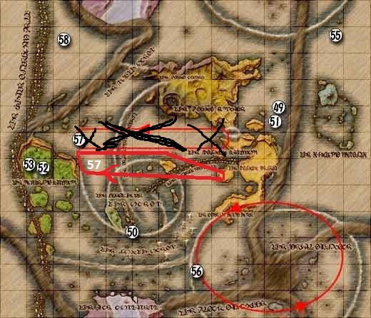 От Насрада летим на север и немного на восток. Расположено на валуанских горах. |
