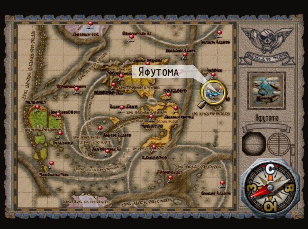 Летим на север и немного на восток от Яфутомы, через очень длинный путь, пока не окажетесь в нижнем левом углу карты. Это невидимый остров в углу карты. |
