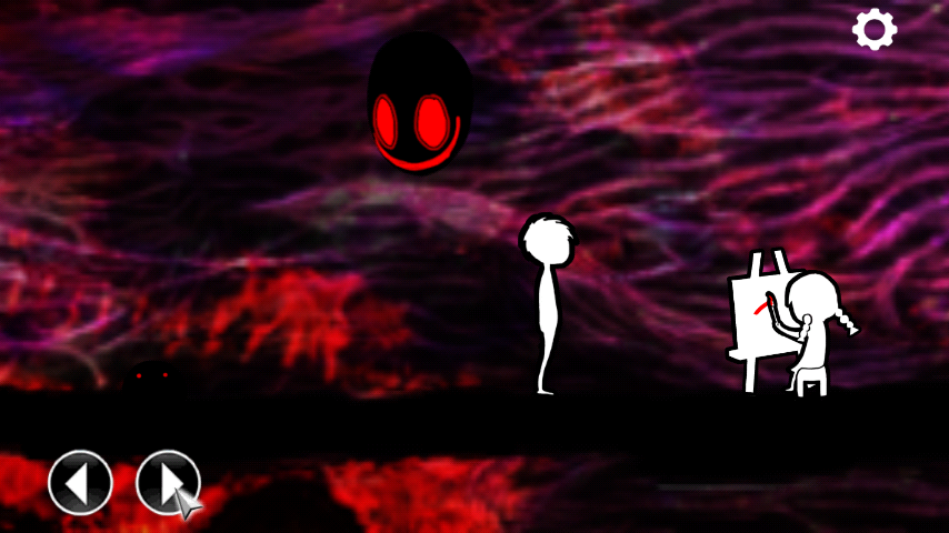 Идите вперёд. Белый силуэт девочки что-то рисует, подойдите к ней.