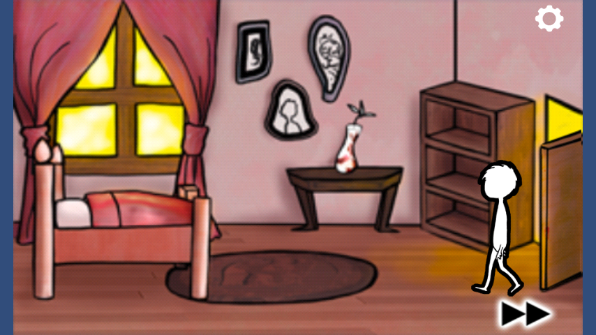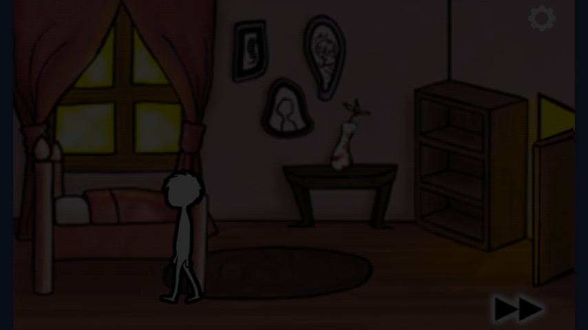 Нажмите на пустую раму и соберите картинку. После этого возьмите ключ и идите в тёмный проход (нажмите).