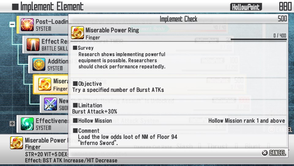 О: К игре вышло два больших патча (у японцев и азиатов три, у нас первый из них сразу встроен в игру), которые не просто фиксят известные баги, но и добавляют много нового: порядка 30+ часов игры, другая мини-карта Пустой зоны, упрощение снаряжения напарников и получения некоторых «орудий» (implements), наряды из Gun Gale Online.