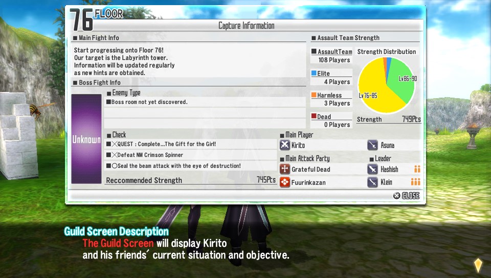 Главный герой Кирито, игрок-одиночка, откопавший редкий уникальный скилл для оружия в двух руках. Он заводит друзей и все время оказывается в центре событий^^ В книгах/аниме он находит альтернативный способ завершить игру на 75 этаже. Но в Hollow Fragment/infinity Moment этот способ не срабатывает, и мы начинаем играть за него с момента попадания на 76 этаж.