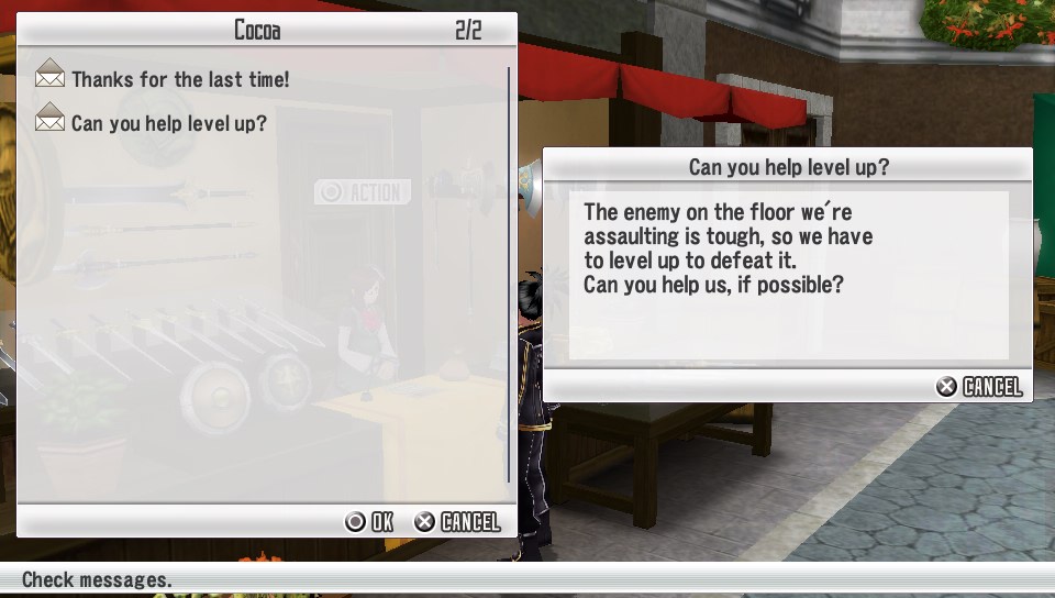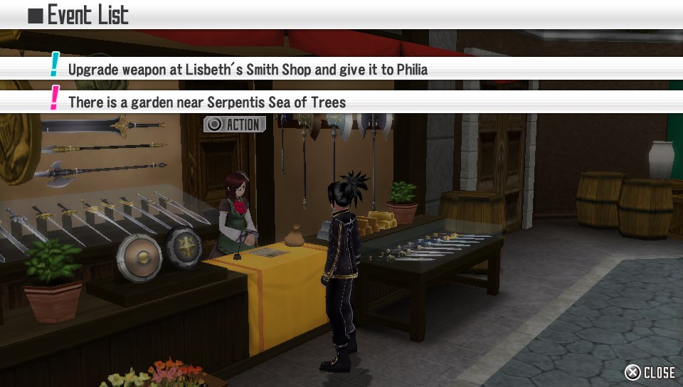 О: Проверьте список событий (квадрат Event list затем круг). Голубые метки отвечают за основную историю. Так же можно открыть карту зоны – там будет облачко с восклицательным знаком, отмечающее место, куда надо идти. Если его нет, то вам надо либо поговорить с Филией, либо сбегать в одиночку в кафе в Айнкраде. Учтите, что иногда по знаку надо прийти с определенным напарником или в одиночку, чтобы стригерить событие.