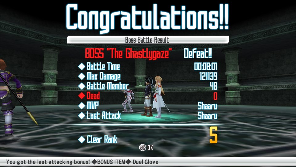 Заканчивайте с Айнкрадом (все 100 этажей). На боссах так же нужны последние удары и без потерь. Идя на босса 99 этажа возьмите с собой весь выбитый ранее mvp-дроп.