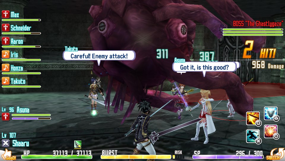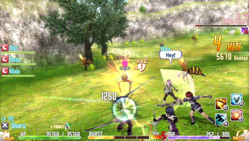 О: «Круг» активирует усиленные атаки (burst attack), но их надо чередовать с навыками (другие кнопки и меню по L или R).