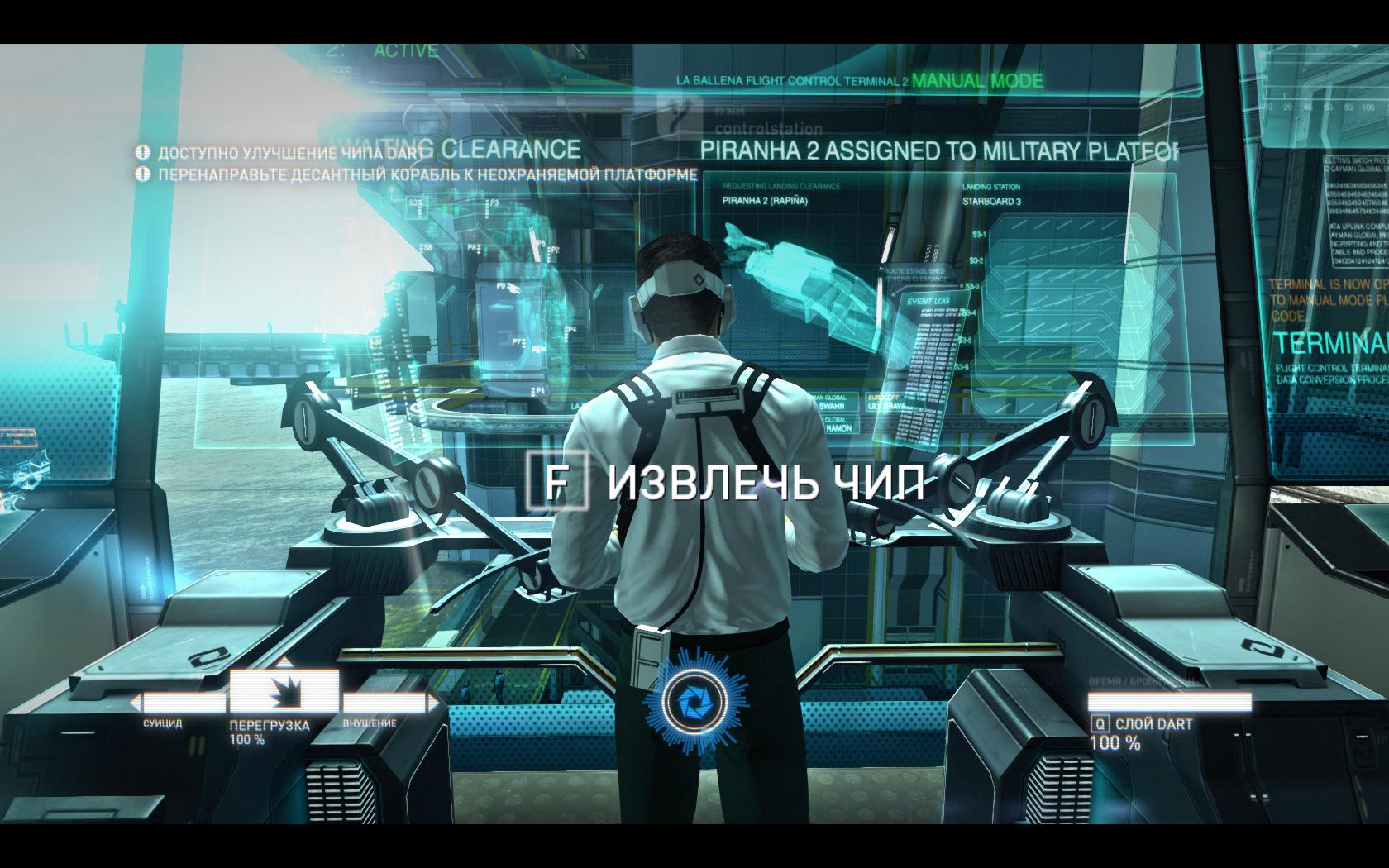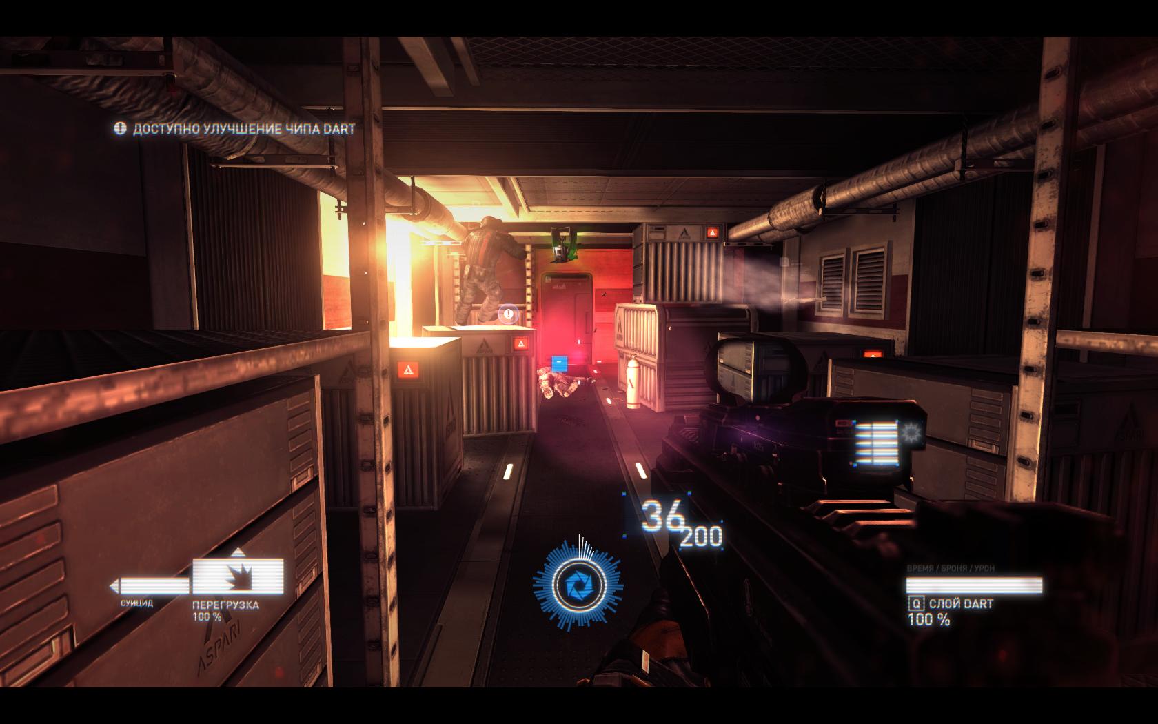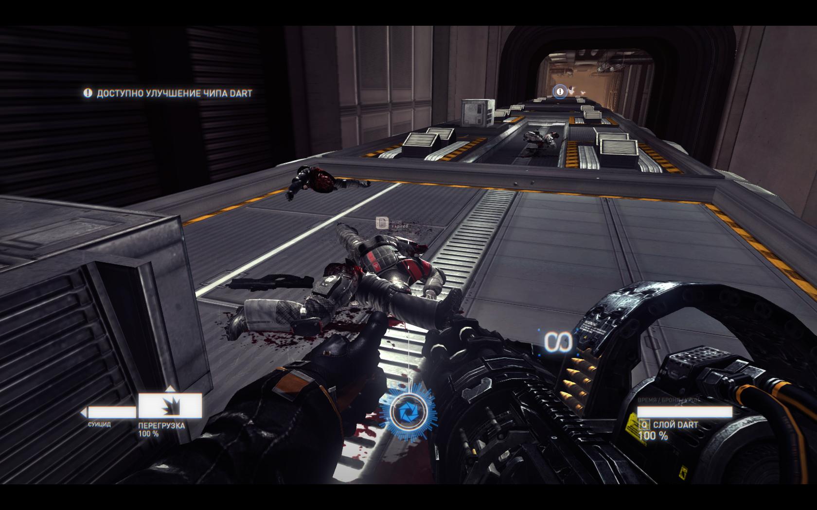 Геймплей сводится к беганью по линейным локациям и отстрелу плохих парней. Но отстрел не обычный, а с фишками. Первая из них это «Суицид». Эта фича заставляет противника совершить самоубийство. Если враг один, то он просто достанет пистолет из кобуры и застрелится, но если их несколько он может подорвать гранату, попутно захватив на тот свет пару вражеских солдат. Вторая фича «Перегрузка». Производит перегрузку вражеских чипов, делая их слабее. В первоначальном виде может перегрузить двух врагов, но после апгрейда позволяет произвести перегрузку сразу трем противникам. Третья и самая мощная фича, на мой взгляд «Внушение». Позволяет на некоторое время перевести врага на вашу сторону. После того, как все враги будут убиты вашим мнимым другом, он самоуничтожится. Также имеется способность «Слой Dart». При активации вы становитесь быстрее, ваша броня и урон увеличиваются. При последующем апгрейде у вас еще и будет регенерировать здоровье.