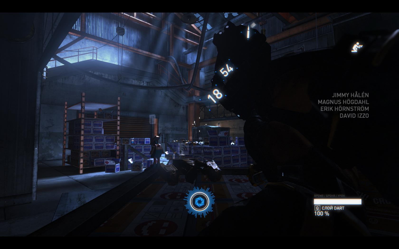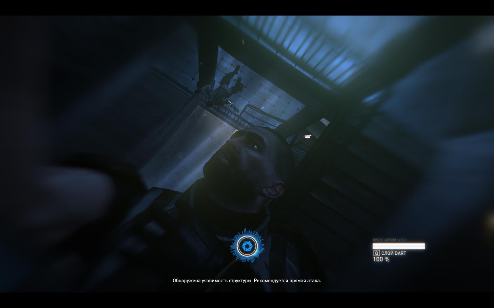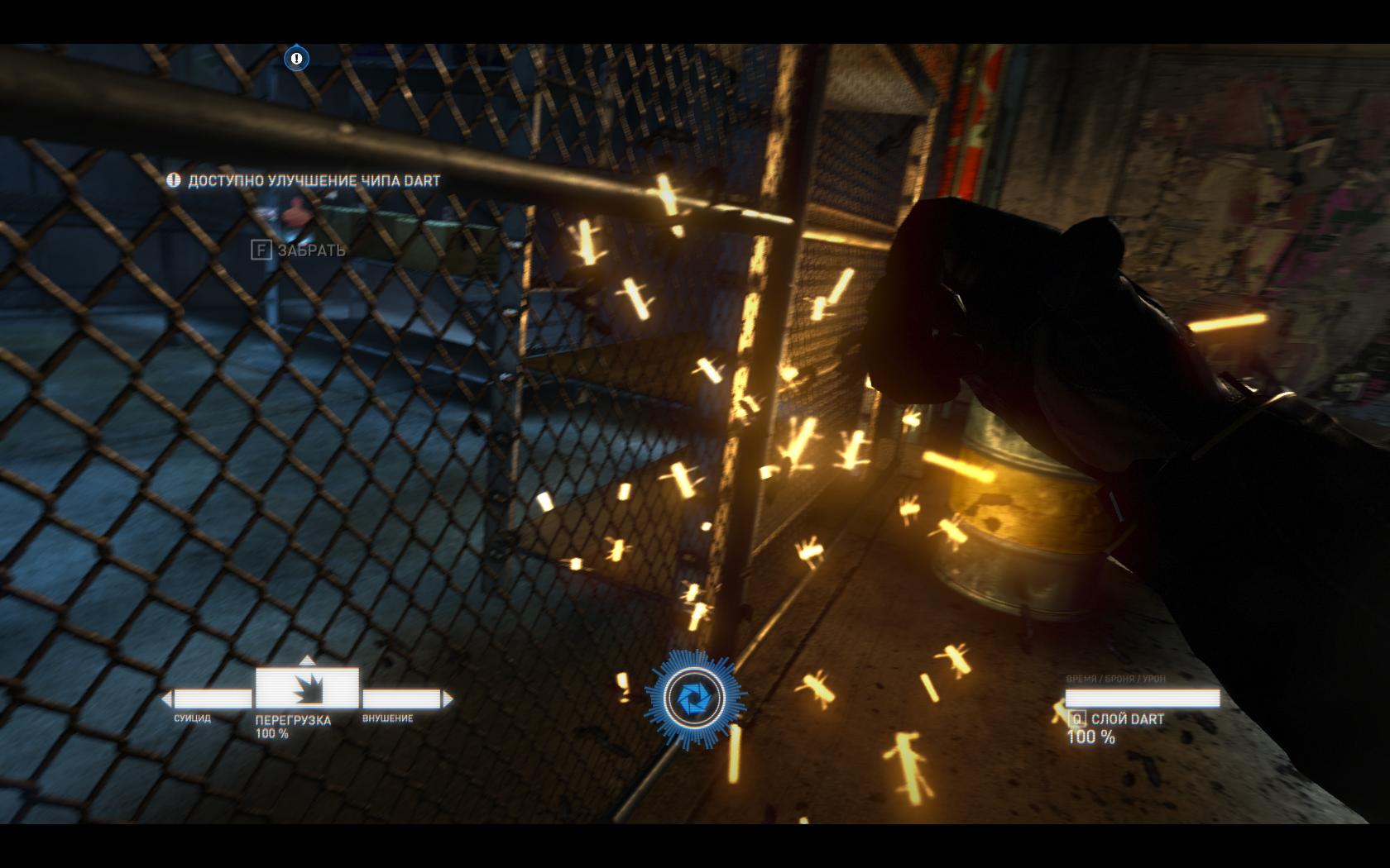 Геймплей сводится к беганью по линейным локациям и отстрелу плохих парней. Но отстрел не обычный, а с фишками. Первая из них это «Суицид». Эта фича заставляет противника совершить самоубийство. Если враг один, то он просто достанет пистолет из кобуры и застрелится, но если их несколько он может подорвать гранату, попутно захватив на тот свет пару вражеских солдат. Вторая фича «Перегрузка». Производит перегрузку вражеских чипов, делая их слабее. В первоначальном виде может перегрузить двух врагов, но после апгрейда позволяет произвести перегрузку сразу трем противникам. Третья и самая мощная фича, на мой взгляд «Внушение». Позволяет на некоторое время перевести врага на вашу сторону. После того, как все враги будут убиты вашим мнимым другом, он самоуничтожится. Также имеется способность «Слой Dart». При активации вы становитесь быстрее, ваша броня и урон увеличиваются. При последующем апгрейде у вас еще и будет регенерировать здоровье.