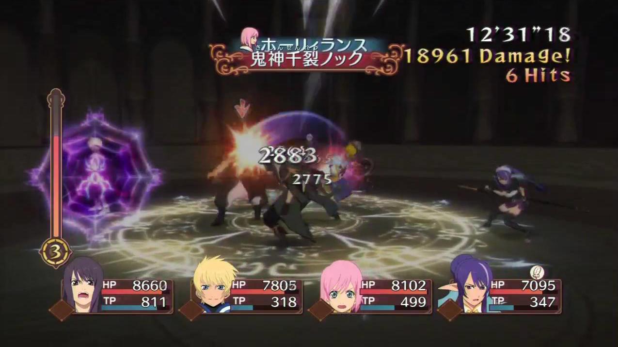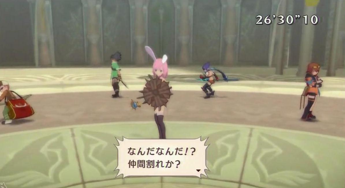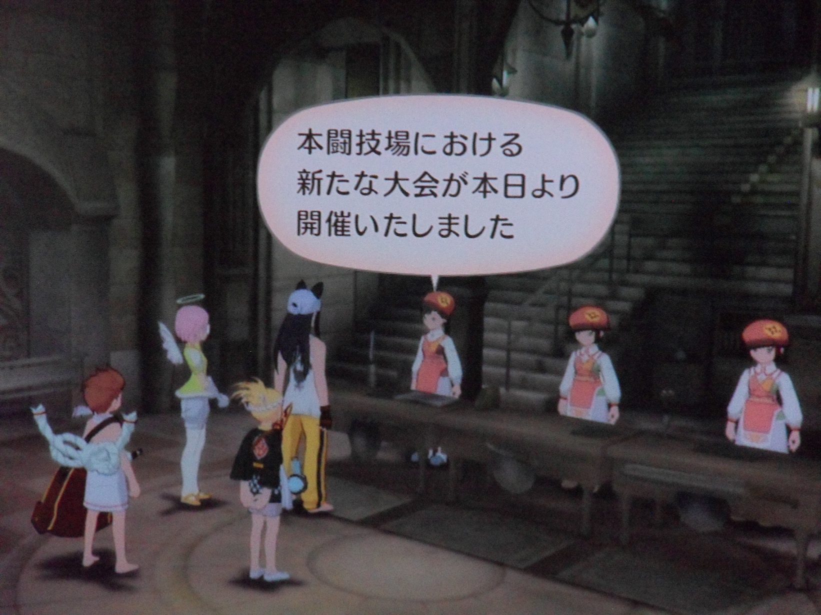 Как уже говорилось неоднократно, PS3-версия обзавелась командными турнирами. Чтобы принять в них участие, придётся переговорить с дамой на кассе слева. В командных битвах будут участвовать персонажи, находящиеся в вашей активной партии, и экипировку вы можете заменить в самой битве. Монстры же будут выходить волнами по нескольку экземпляров, и после битвы вы будете получать за них лут. Предметы доступны все те, что у вас в наличии. Ну что ж, там, где в одиночных матчах мы не могли взять качеством, в командных матчах мы возьмём количеством! Не забывайте использовать линзы на всех противниках.