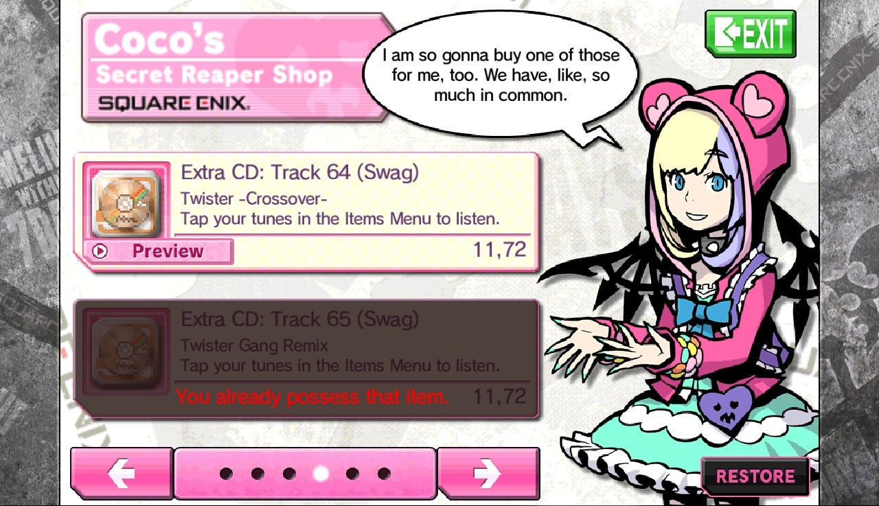 Ну а теперь, несколько слов про внутриигровые покупки. И снова я удивляюсь своим же словам, они сделаны настолько хорошо, что их даже трудно заметить. Всего за 12 (двенадцать) баксов вы можете купить дополнительные треки, которые будут играть в меню, пак предметов (Scarletite, Dark Matter, Orichalcum всё по одной штуке, редкие предметы в игре) или супер жрачку (съедается за раз, повышает все статы на 10 и НР на 100).