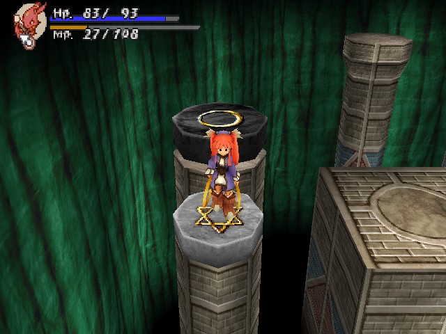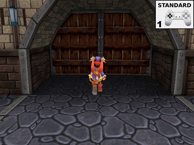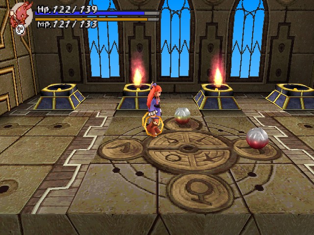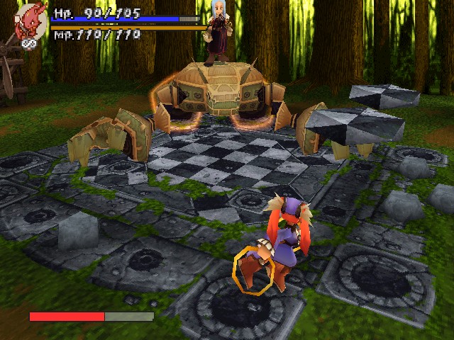 Опять Skull Beast. Просто ударьте его один раз, когда он дымится. Далее идите налево и наступите на белую кнопку. Теперь вам надо убегать от него. Каков принцип, когда он вас может догнать непонятен, я уже прошла эту лестницу без повреждений, но он все равно меня догонял. Пробуйте, пока не получится. Смотрим сценку и автоматически оказываемся в городе. Немедленно бежим сохраняться. Идем в дом Клауса. Идем тем же путем снова в Руины, доходим до прыгающих платформ, прыгаем по ним. Дальше доходим до вторых платформ опять прыгаем по ним, спускаемся вниз по лестнице и обыскиваем тело нашего друга. Находим новую магию. Поднимаемся вверх становимся на кнопку, прыгаем по платформам вправо и используем растение, чтобы попасть домой.