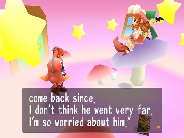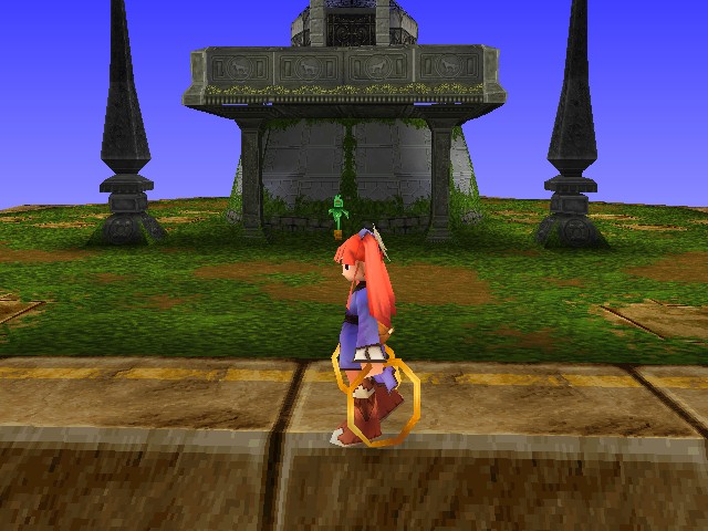 После битвы заходим в ателье. Видим табличку с крестом, слева от креста лежит сундук с Moon Stone. Пока не жмем на крест, поднимаемся на второй этаж, входим в дверь берем еще один Moons Stone. Проходим дальше по балкону вправо и берем из сундука серебряную монету. Теперь идем к кресту. Смотрим сценку, мы автоматически оказываемся в городе. Теперь в гостинице можно спать. Сперва сохранитесь. В ИНН восстанавливаются только ХП :(. Поднимаемся в комнату и спим. Заходим в магазин Тонио. Первое здание правее от ворот. Продаем монстров 2 функция. Нам нужно Silver Bracer, если не хватает, купим позже. Если хватило, идем сражаться с Родом (светлый проход между двух зданий). Это необязательно, помните, битва сложная и никто вам не вернет ваши 100г если проиграете. Да, да, чтобы драться с ним, надо заплатить. Но лучше туда пока не ходить. Идем в дом Клауса (ниже ИНН). Клаус даст нам красную магию. Выходим и говорим 2 раза с мальчиком с зелеными волосами. Теперь идем в Отель. Это ниже магазина Тонио. В углу комнаты будет Dream Stone, берем его и ложимся спать. Если у вас нет денег на гостиницу, то сходите сюда после следующего прихода в город. Вы можете продать Moon Stone и Dream Stone, так как они больше нигде не применяются.