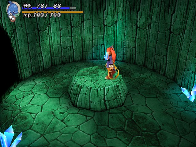 Идем в Underground Ruins. Дважды идите вперед и прыгайте в яму. Заходим в верхнюю дверь. Идем тем же путем, только в каждой комнате с платформой убиваем 3 кукол. Получив все платформы, возвращаемся назад и наступаем на них по очереди. Опять можете восстановить хп. Смотрим сценки.