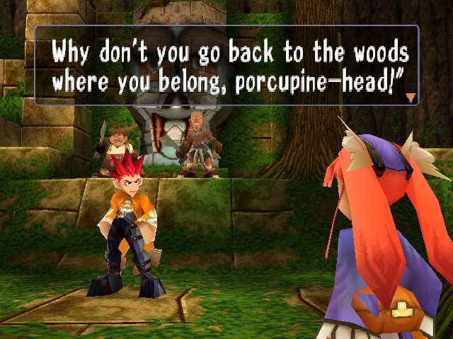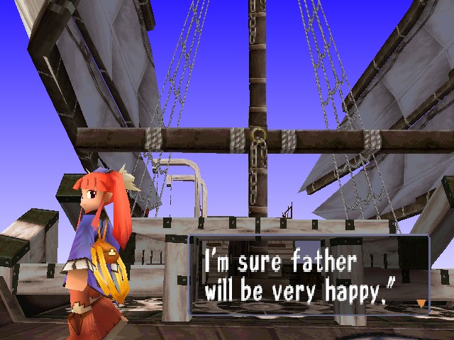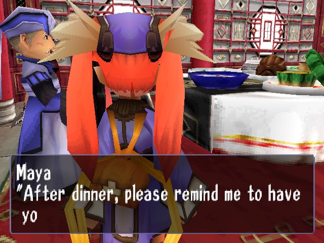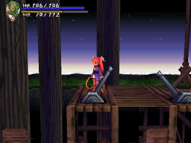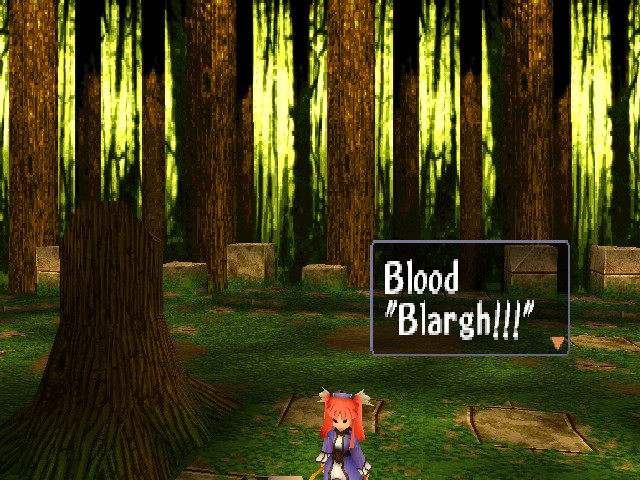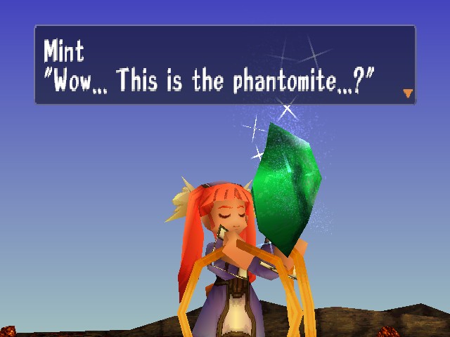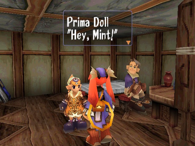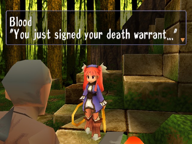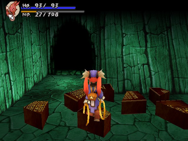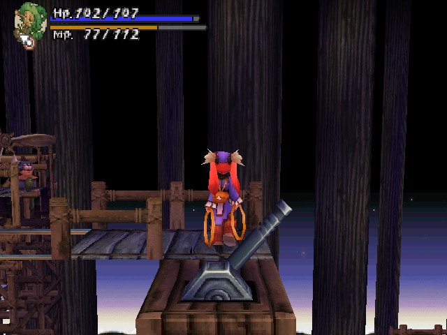 Итак начинаем игру, Минт очень голодна. Пробуем все блюда. Минт садится на кресло отца и говорит нам, что когда-то в будущем будет править всем. Но вот входит Мая (сестра Минт, принцесса). Мая отчитывает Минт, а Минт все продолжает звать Маю покушать. Смотрим сценку и узнаем, что Минт лишилась прав на трон, а будущей наследницей будет Мая. Смотрим сценку до конца. Минт бежит из дворца, решив найти Реликвию и с её помощью править всем миром! На корабле наблюдаем за разговором Смоки и Блуд, это наши будущие враги. Они собираются обокрасть Минт, но у них не получается из-за того, что корабль столкнулся с чем-то. Минт оказывается в доках, где ее встречает Девис. Смотрим сценку до конца, управление переходит к нам. Заходим в город, сохраняемся. Сохраниться можно в Inn (Гостиница), она находится там, где ходит девушка с белыми волосами. Заходите внутрь и подойдите к прилавку, выберете опцию Register. Выходим. В основном сейчас нет ничего интересного в городе. Идем в боковую часть города. Она находится в правой стороне, темный проход между 2 домами. Сразу как заходим, проверяем 2 бочки и там находим Silver Coin (они используются, чтобы оживить героев). Уходим отсюда. Бежим в противоположную такую же локацию (светлый проход). Там будет Род, с которым мы можем подраться за 100г. Но пока Рода там нет. Осмотрите землю и увидите как что-то блестит. Подходите и подберите еще один Silver Coin. Выходим. Идем к большой двери и отправляемся в Лес Карона. Бежим вперед, соблюдая инструкции. В сундуке далее лежат 3 Bronze Coins.