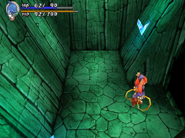 Далее будет комната где 3 двери. Входим в верхнюю и берем штуковину, далее заходим в правую. Здесь лед! Вот для чего мы качали мп. У вас должно быть примерно 108, если у вас недостаточно мп, вернитесь и фармите на муравье. Если же у вас есть 108 мп, но их не хватает, просто побейте муравья, 5-10 ударов восстановят их. Лед нужно атаковать магией Red Burner. Берите Rare Wine, Super из сундуков.