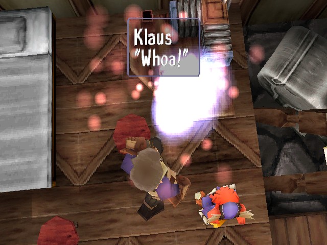 Избегайте маленьких звездочек, и не атакуйте босса, когда они вокруг него. Старайтесь после удара побегать вокруг, чтобы не получить удар молнией. Можете использовать Red Napalm (убьете с 5 ударов). Получаем новую магию. Идем к Клаусу.