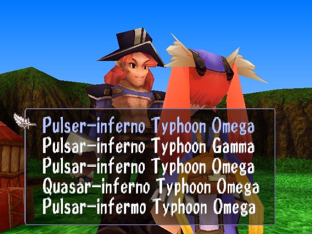 Выбираем ответ Pulsar Inferno Typhoon Omega. Опять идем к Клаусу. Говорим с ним и соглашаемся ехать. Когда управление переходит к нам, нажимаем на раковину, появится Мая. Нас спасает Рю. После того, как перепрыгните, возьмите магию из сундука. Далее на платформе просто уклоняйтесь от атак ведьмы. В городе идем к Роду. Потом идем в таверну. Потом идем в ИНН и жмем Go To Sleep. Выходим и смотрим сценку. После этого направляемся в лес Кароны. Идем к Блуду и Смоки, помогаем им Help Them. Подбираем монетку, идем к горе. Заходим в магазин Тонио. Покупаем новые вещи. Не продавайте Legendary предметы. После покупки можно сходить и подраться с Родом. Идем в дом Клауса.